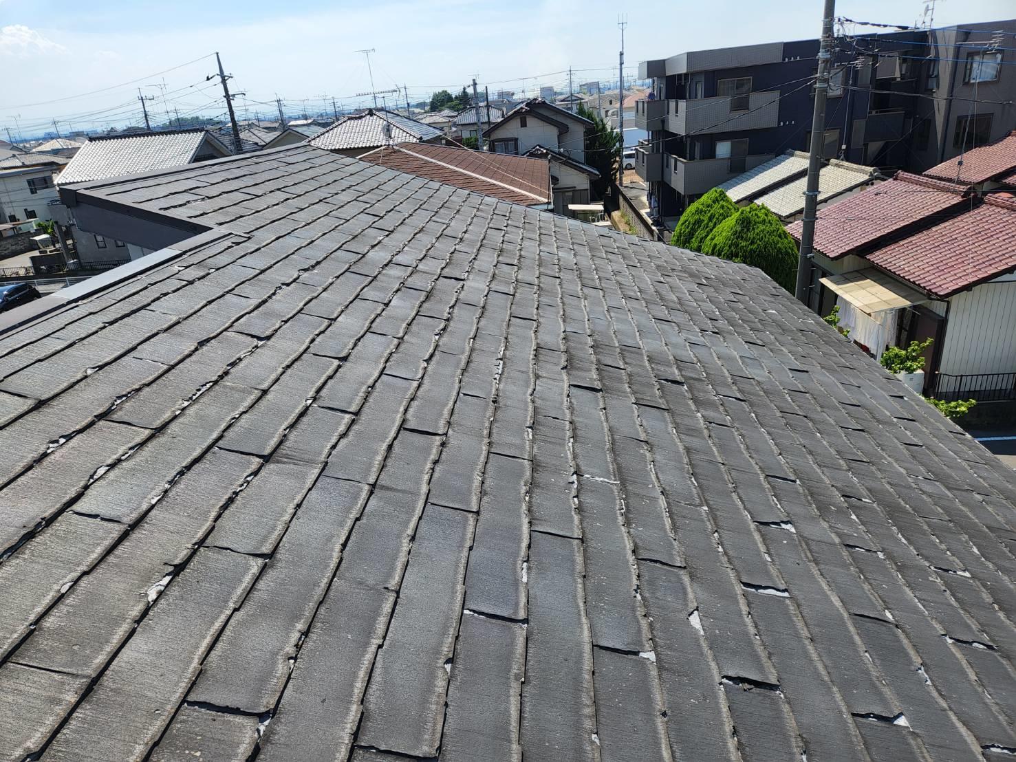 屋根調査をしたところ表面の剥がれ等ひどく塗装が出来ない状態だったためカバー工法をお勧め!30年保証がついているため安心です。