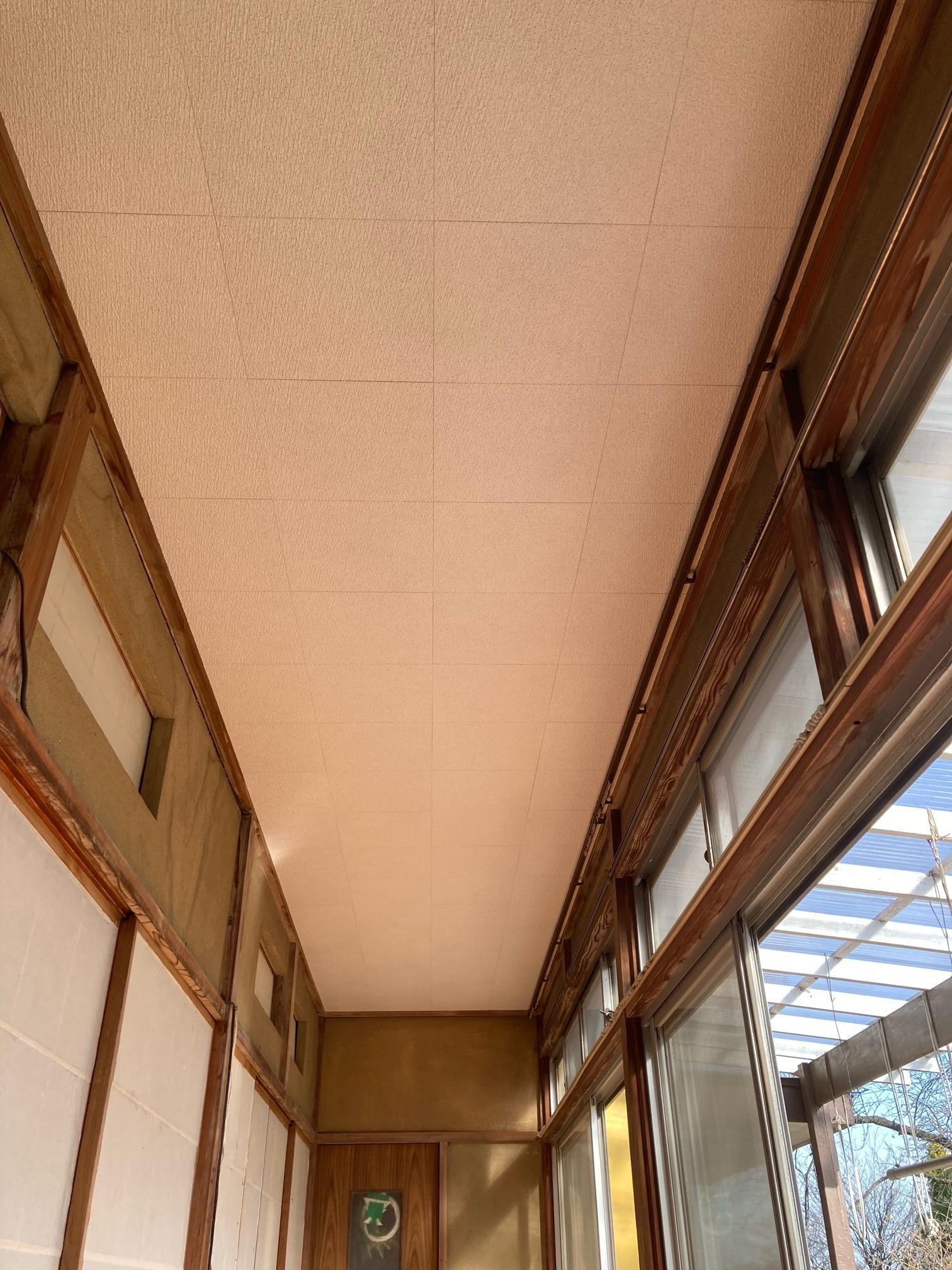 アルミバルコニーも撤去し、雨漏りの原因箇所を修繕。 縁側の天井も下がってきていました。