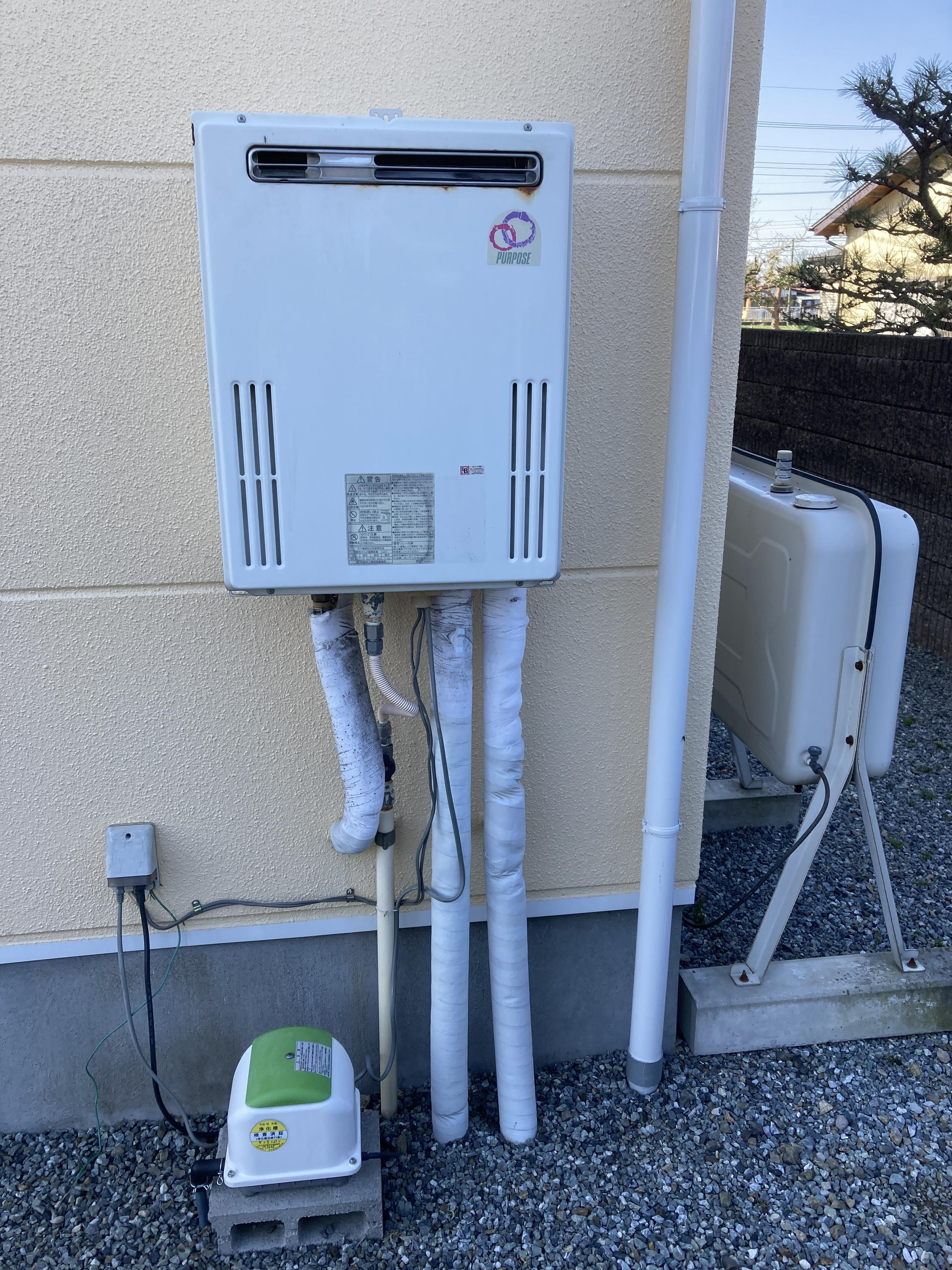 20年使用していた給湯器。一度使えなくなってしまい応急処置で使用していましたがそろそろ交換しておかないととの事で連絡ありました。