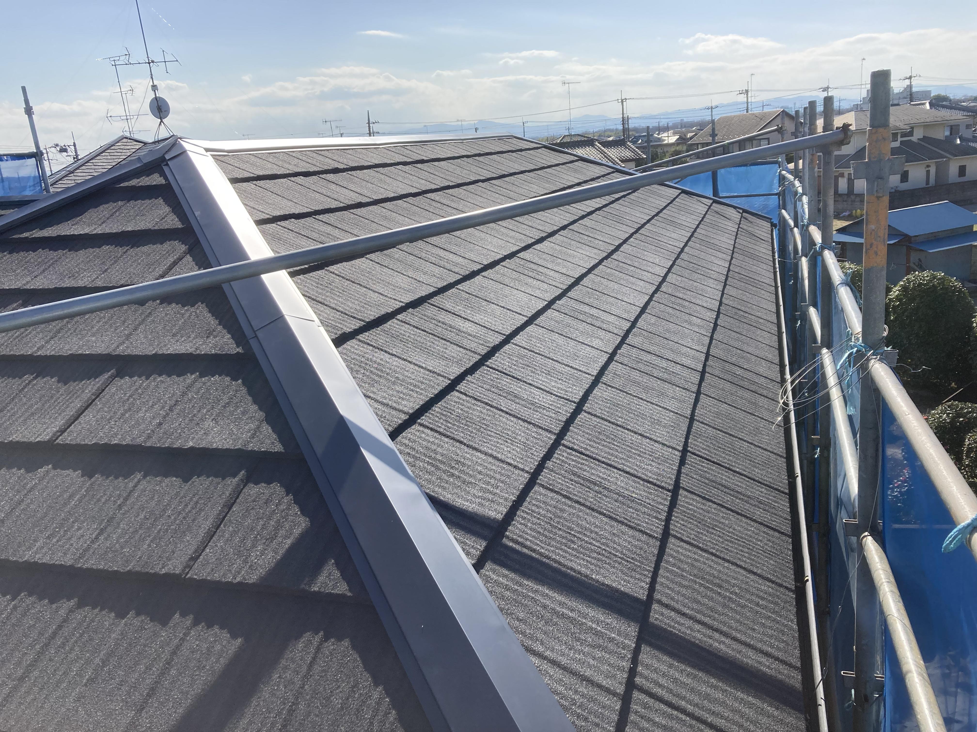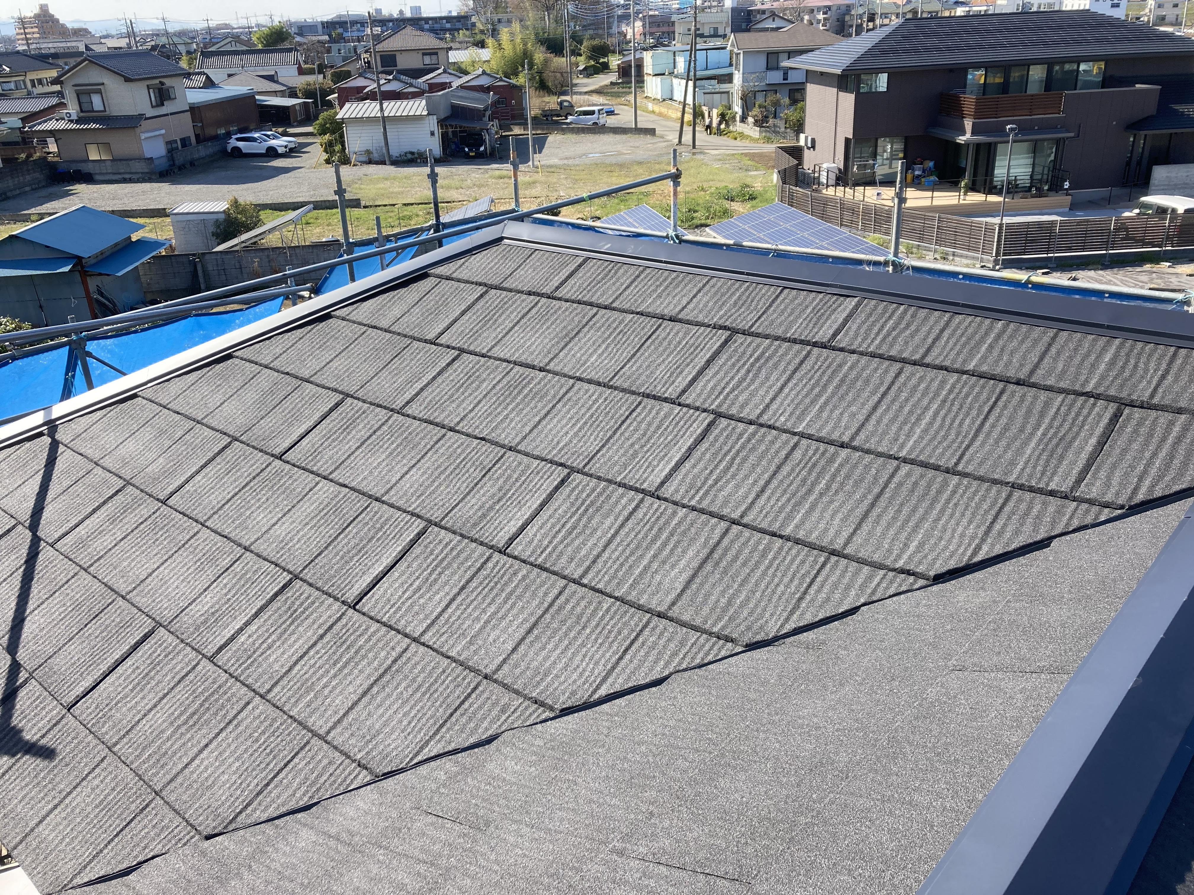 屋根は一番重要です。 O様邸はかけもあり、コケも生えていました。 雨漏りはしていませんでしたが、雨漏りしてもおかしくないほど屋根が傷んでいました。 カバー工法の材質等を説明後、ご納得いただき工事しました。