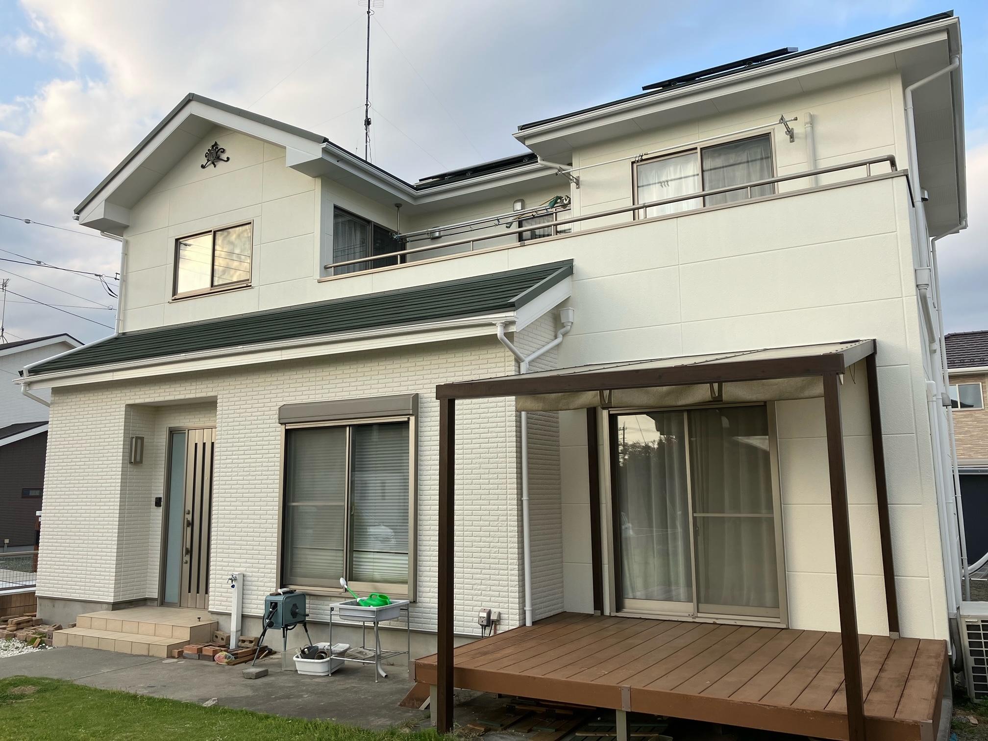 相見積もりなんですがとご主人様よりご連絡いただきました。不安そうに話をしてきましたが調査時、職人と一緒に説明をさせて頂き少し安心して頂けたかなと思いました。 屋根はカバー工法(30年保証、メンテナンスフリー)グリーンはとてもきれいでした。ご主人様も奥様もご満足のいく仕上がりと喜んでいらっしゃいました。外壁の色も一色に見えますが実は2色なんです!