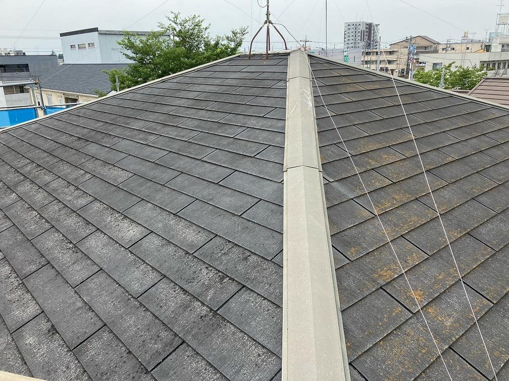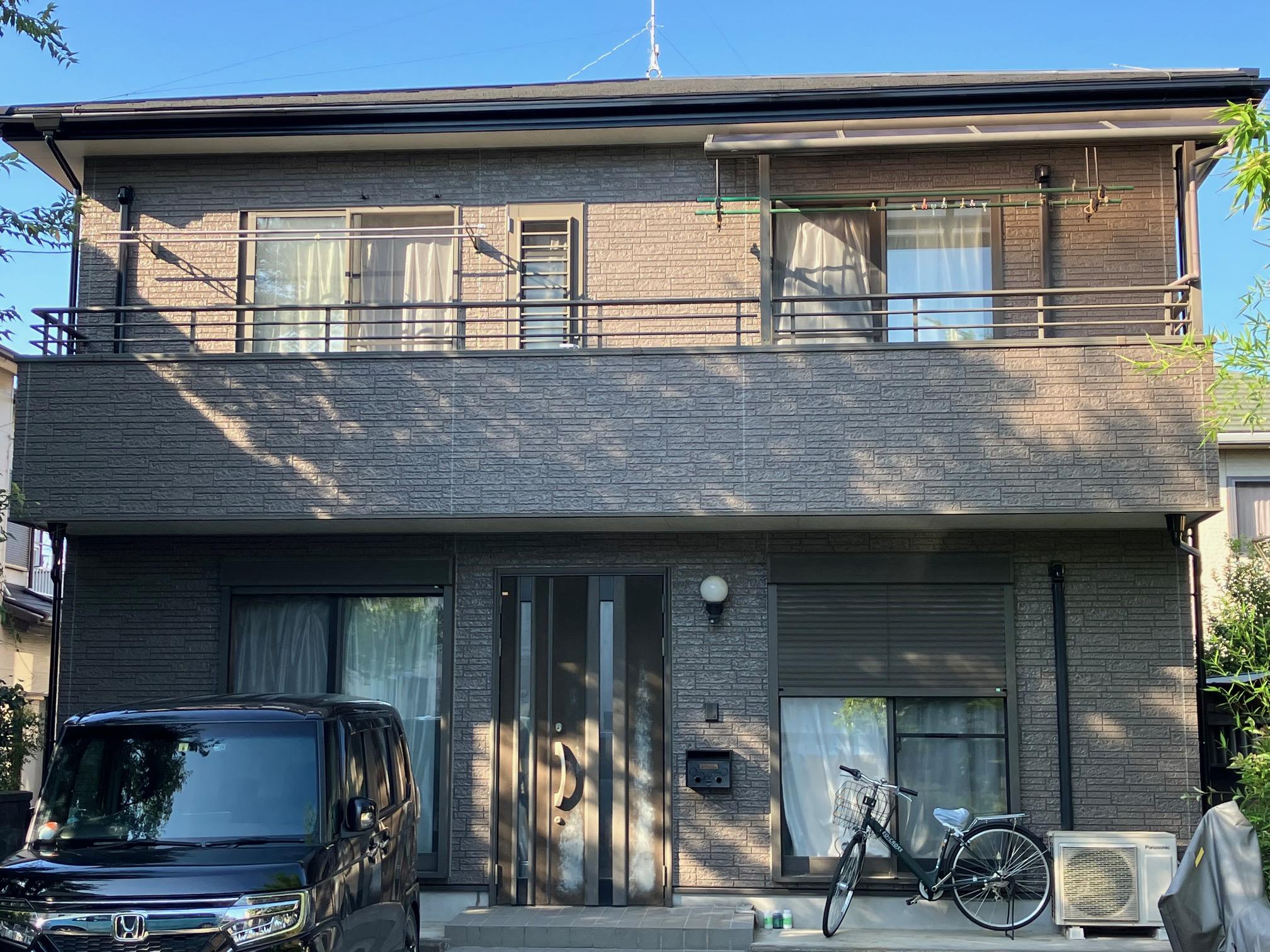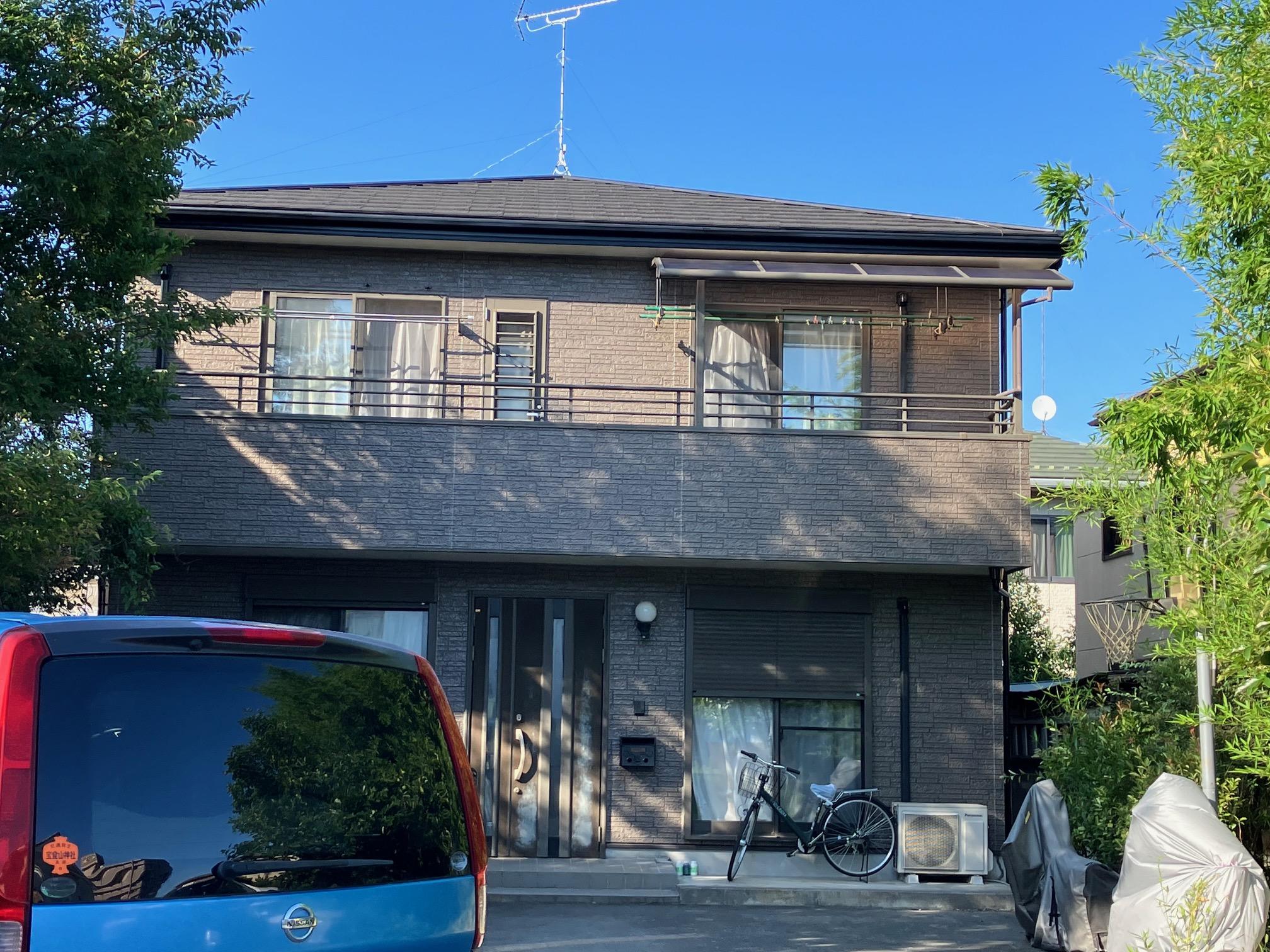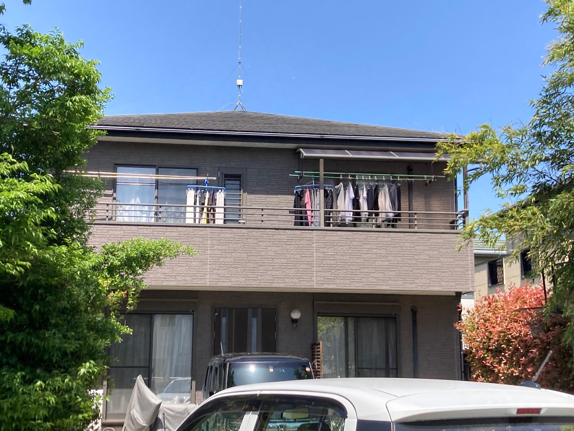 外壁はクリア塗装なので新築時の色のままです。 屋根はひび割れありカバー工法。アンテナも交換しました。 キレイに仕上がりました。