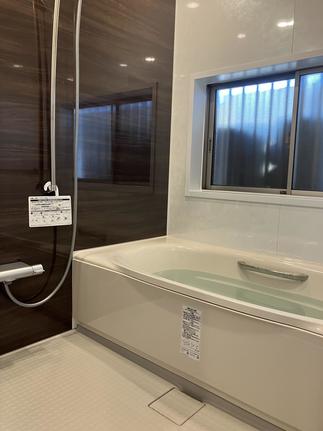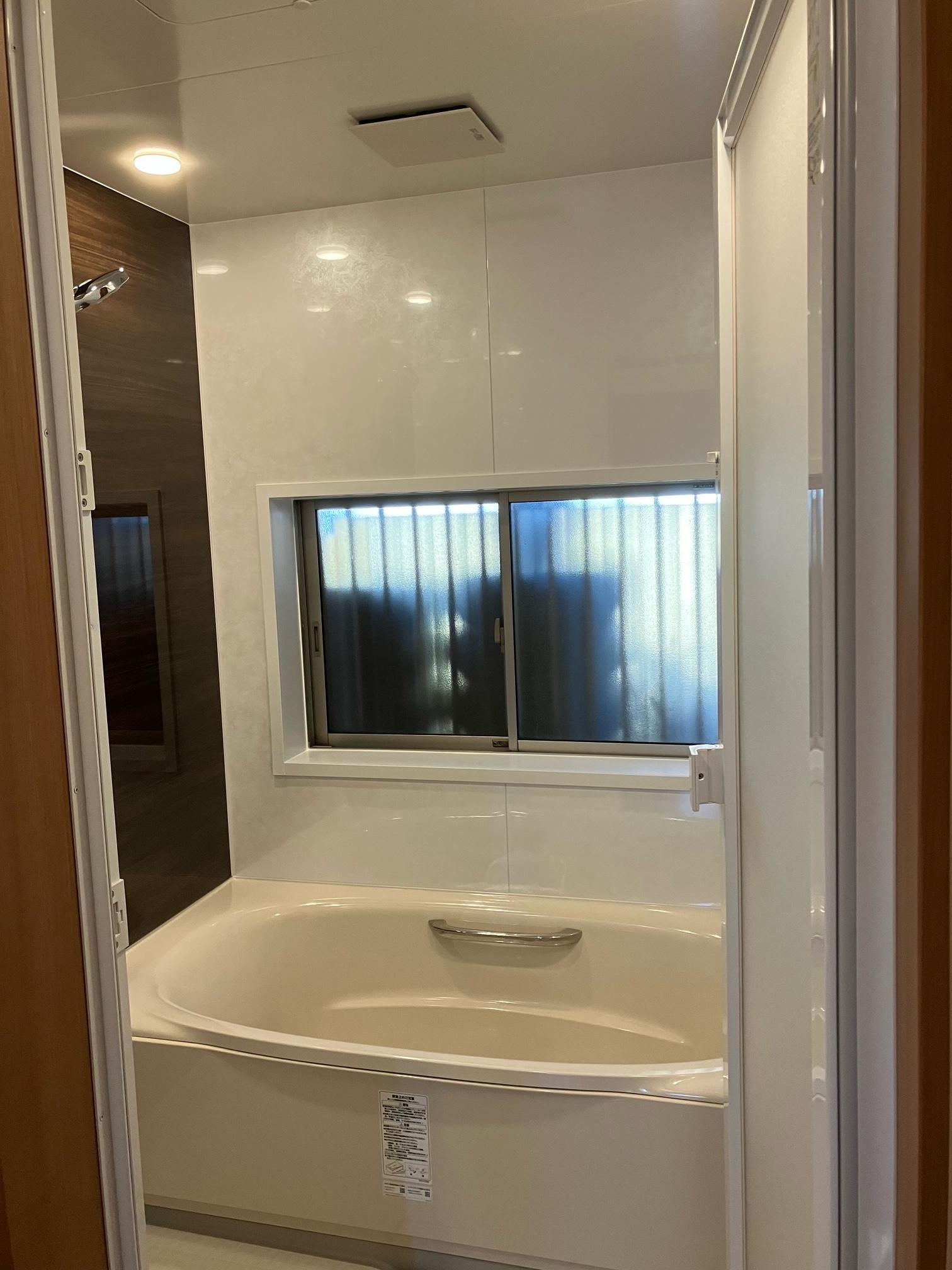 給湯器も交換しました。 浴室はLIXILのリデアMタイプ! お手入れが楽なものがいいとカウンターもなしにしました。 写真ではわかりにくいですがアクセントパネルだけではく他の3面もデザインパネルを選定致しました。