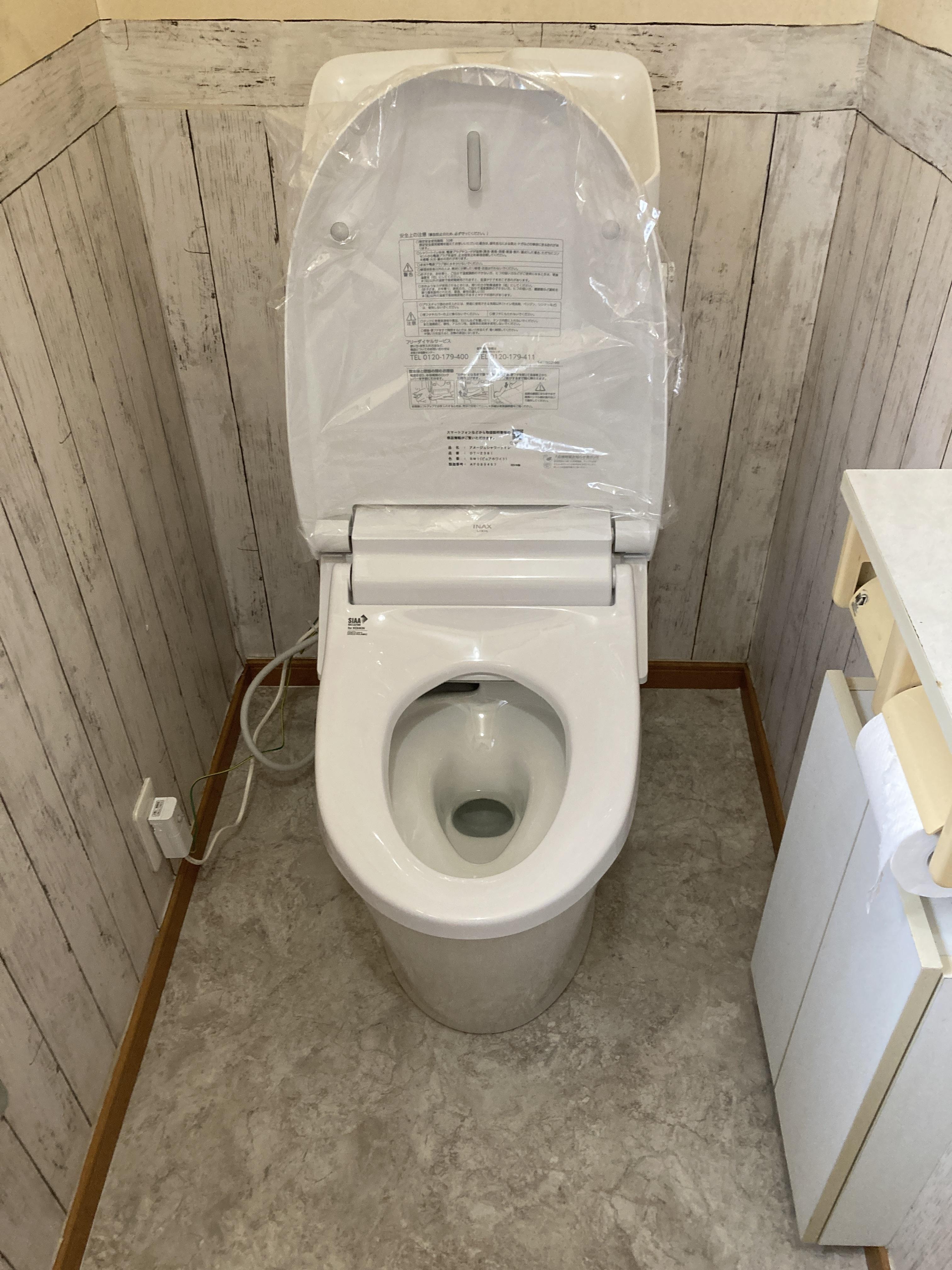便器交換の場合は床だけでも貼り替えした方がいいとご提案で内装は床のみですが今までとは違った柄を選んだので雰囲気変わりましたね。 2階も水漏れしたということでしたが部品供給があってよかったです。 安心して使用してください。