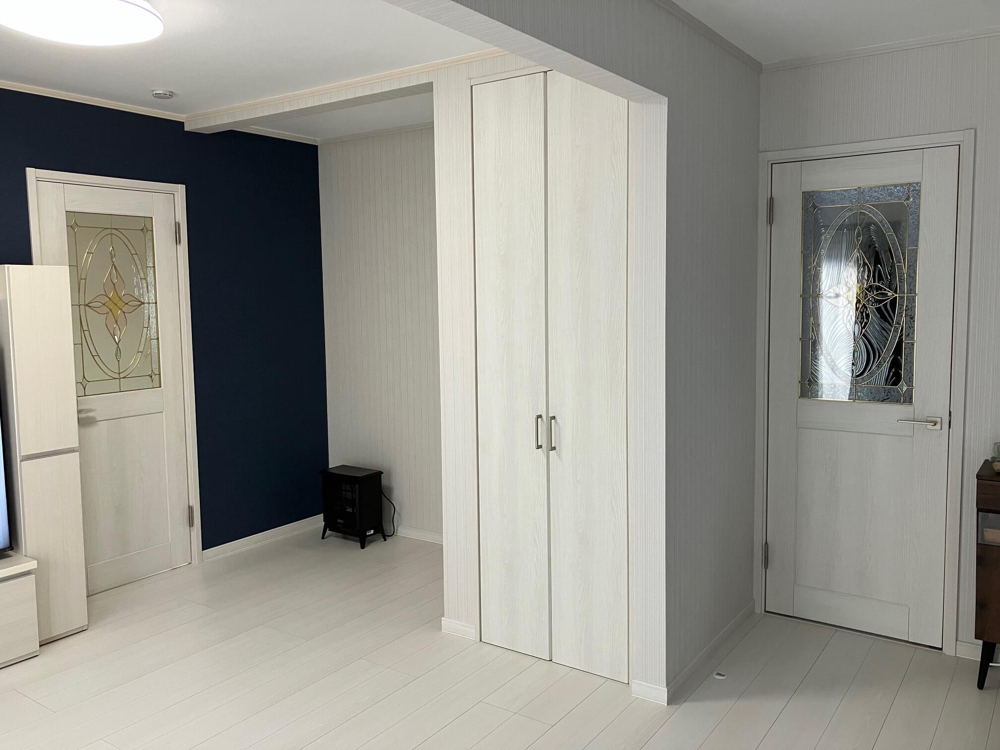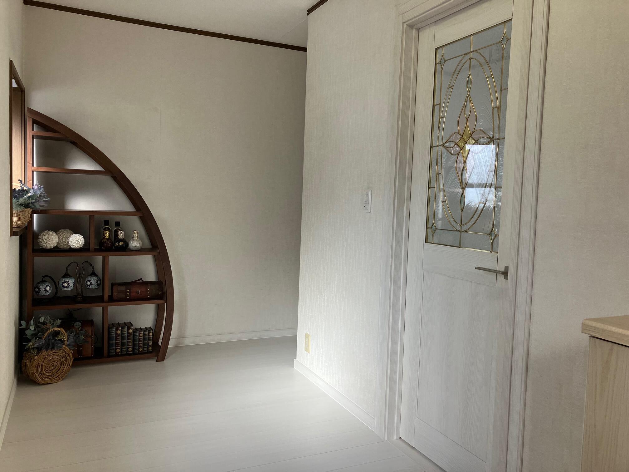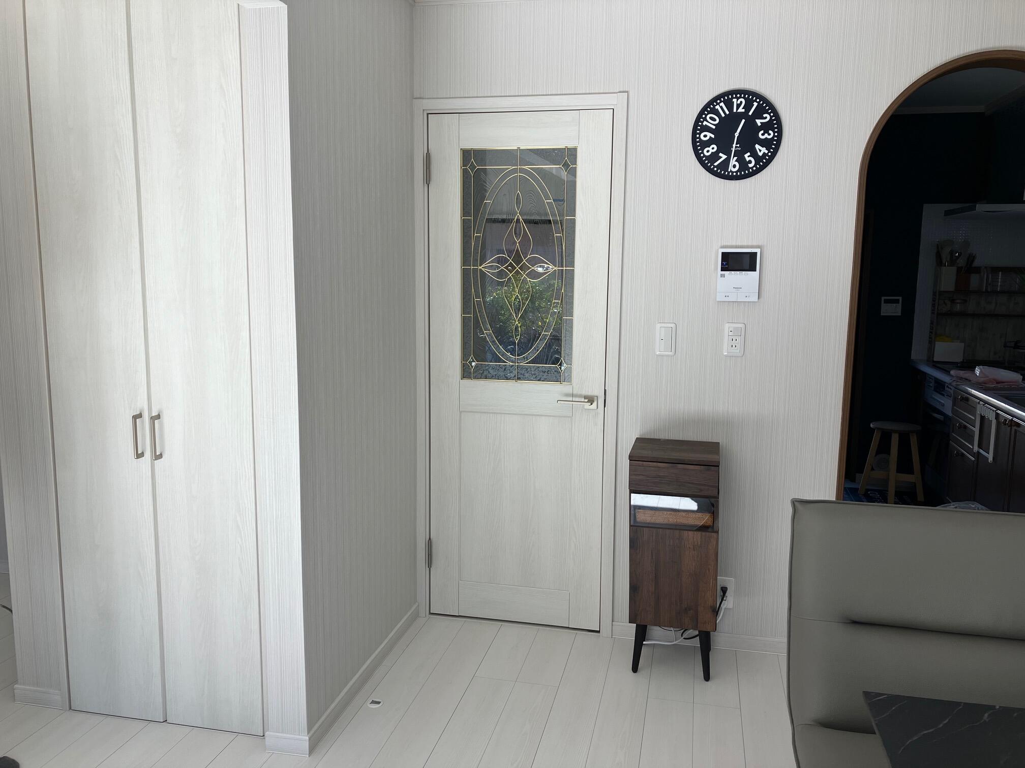 ドアも奥様の好みのデザイン(リクシルのラッシサS)!とてもかわいいドアです。一気にお部屋が明るくなりましたね! 仕上がりに私も感動しました。