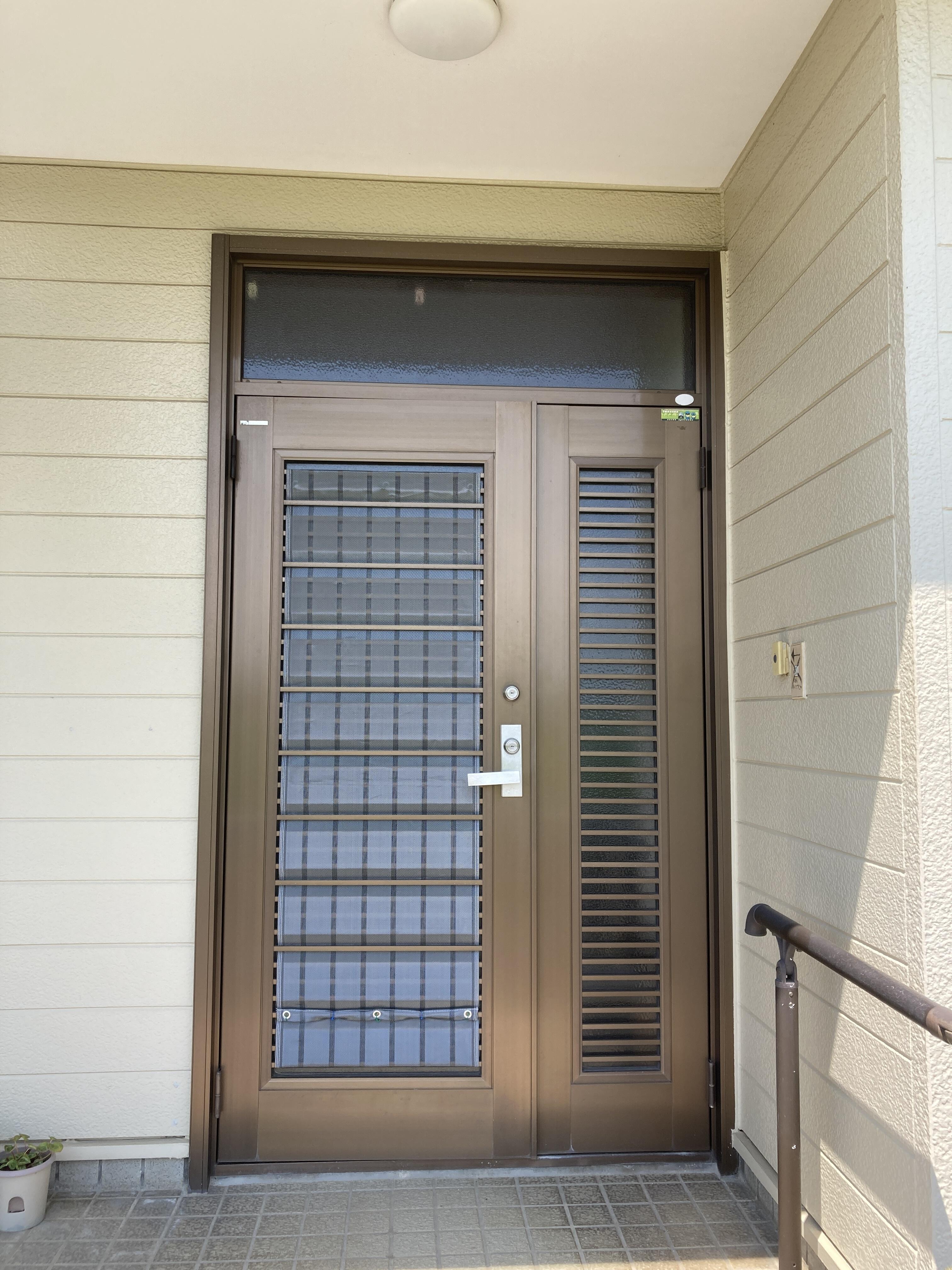 ガラス面の多い玄関ドア。夏は暑く冬は寒い玄関・・・ LIXILリシェントドアへ交換!! 防犯面も安心です!