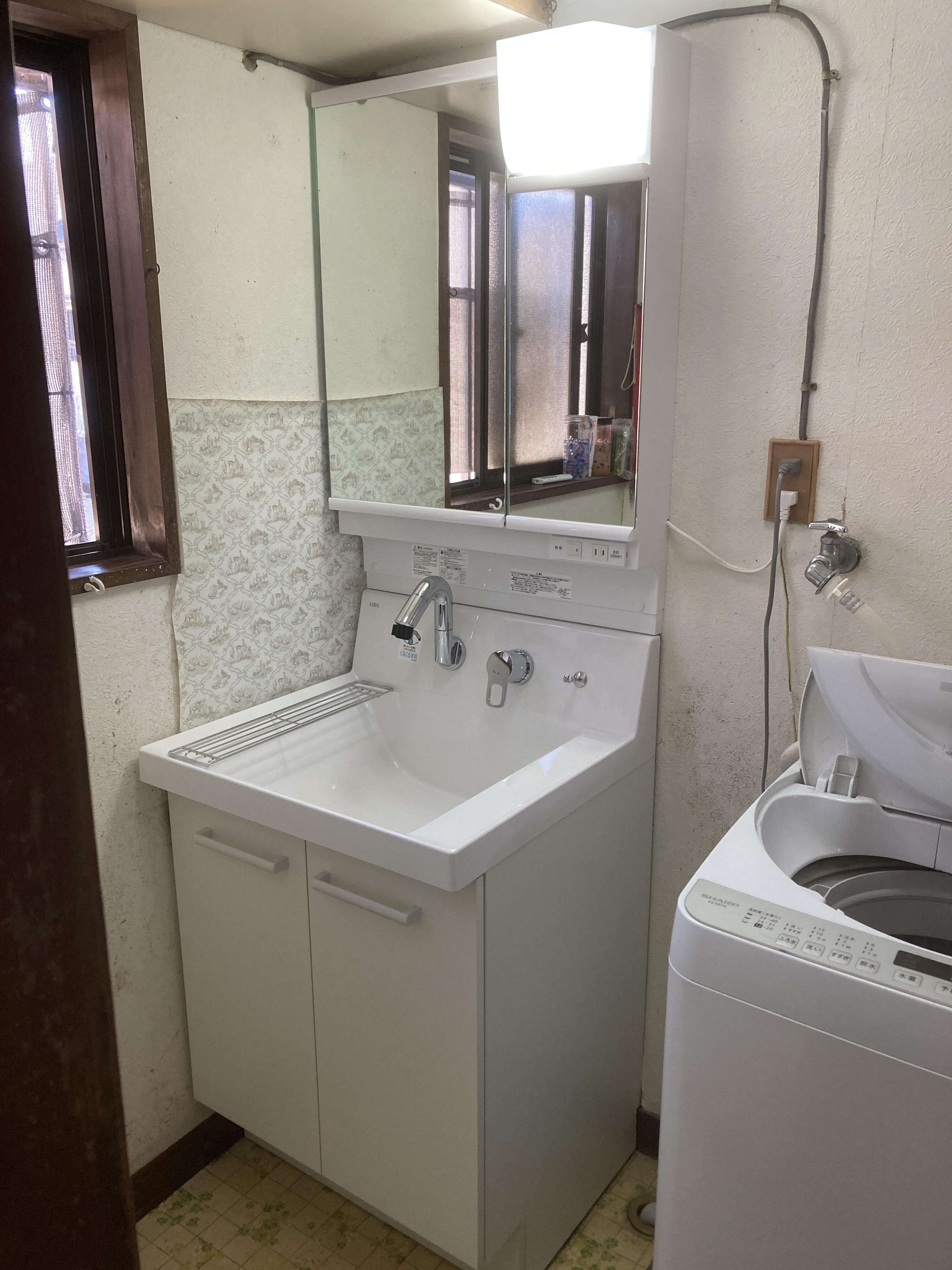 長年使用していて洗面の床が沈んできたため交換。LIXIL(リクシル)のピアラへ