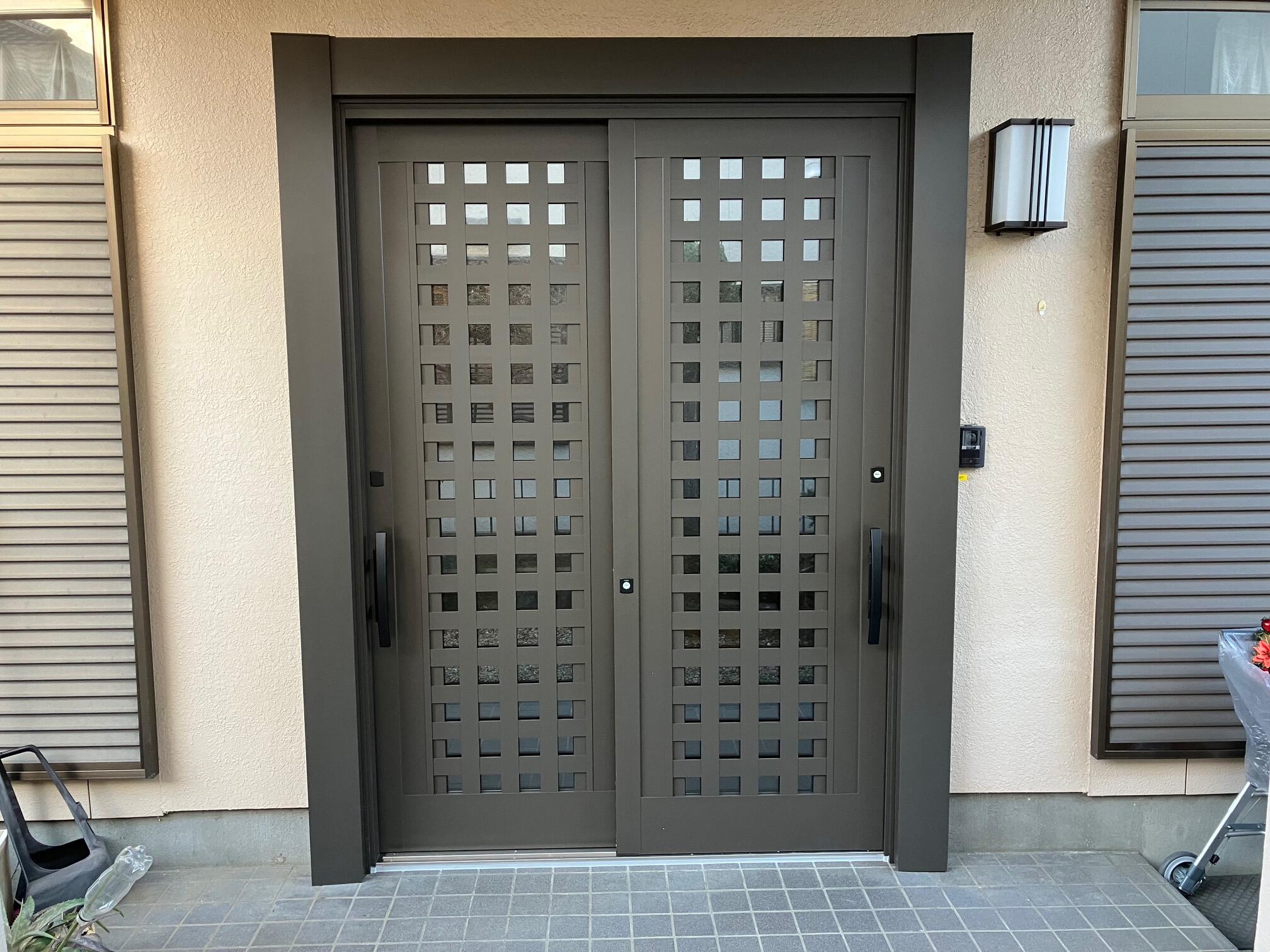 カギの動きが悪く、防犯や断熱も考えて交換することにしました。 リクシル リシェント引き戸 P18型 アルミ色(網戸付き)