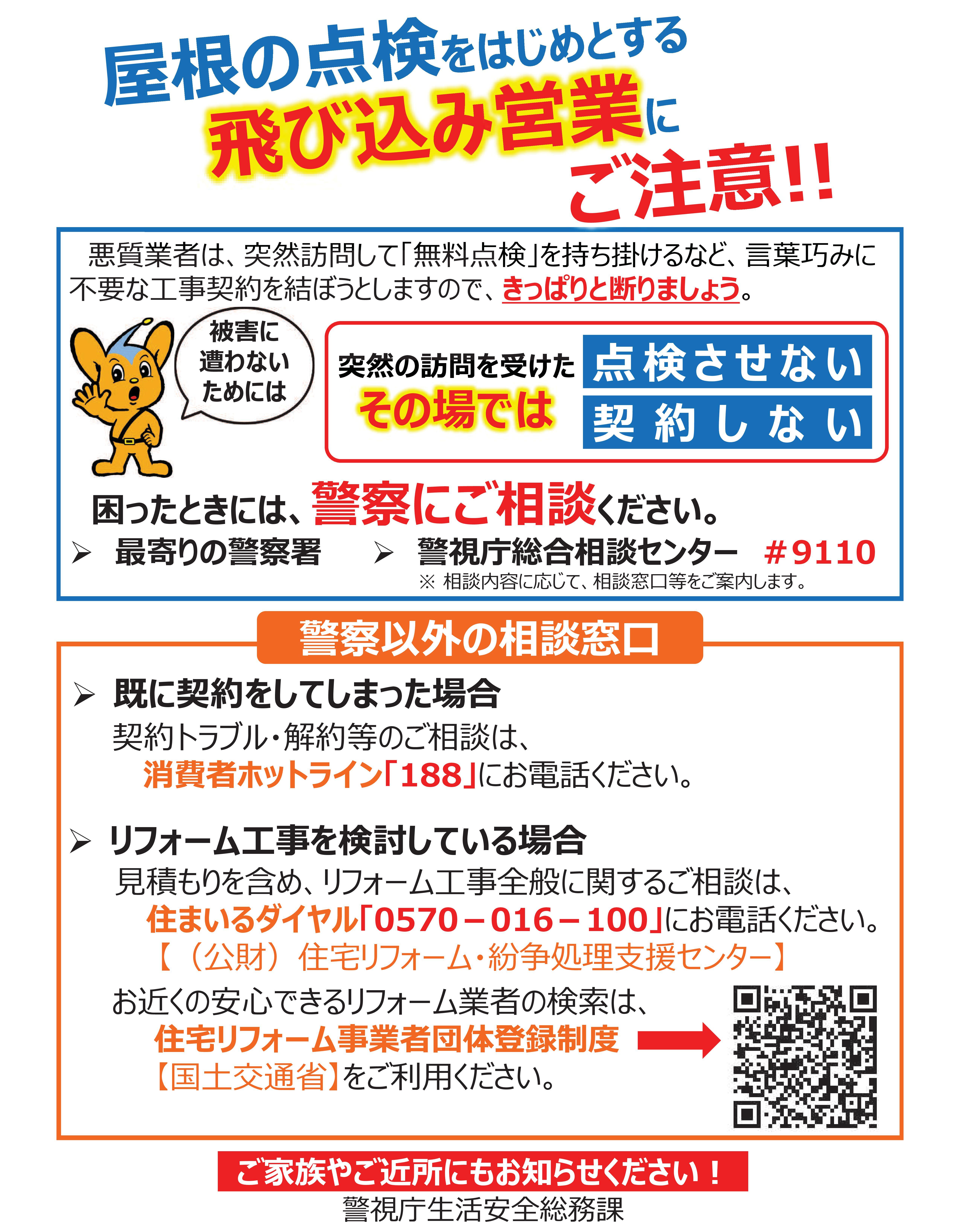 飛び込み営業に注意!!