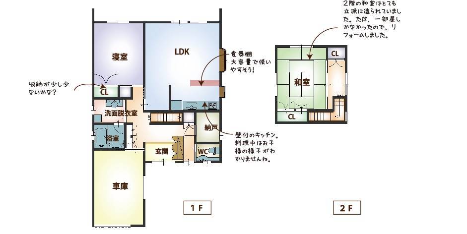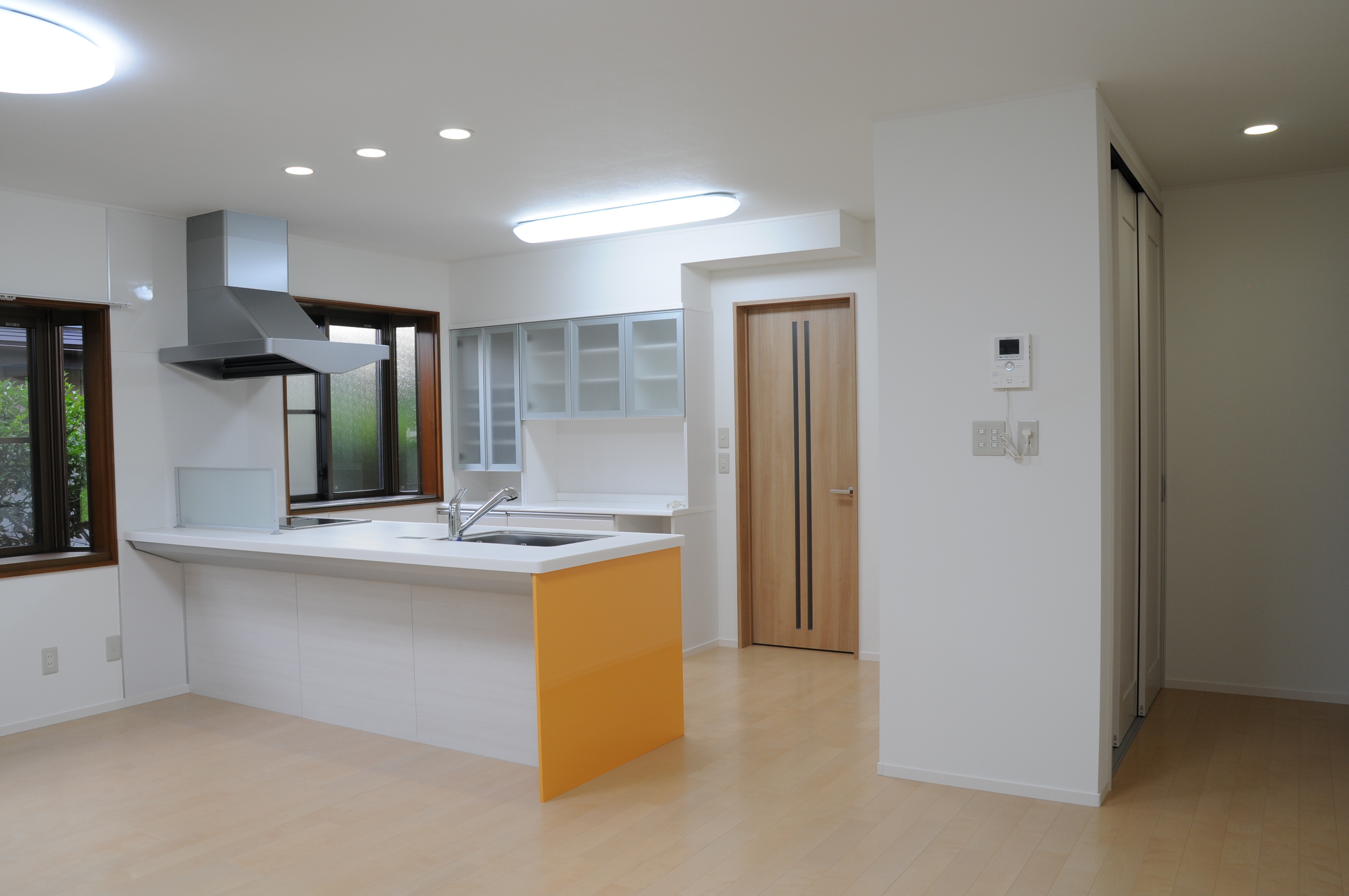 以前のキッチンは、大容量の食器棚があり使いやすそうでしたが、壁付けのキッチンだったため、料理中はお子様の様子がわかりませんでした。