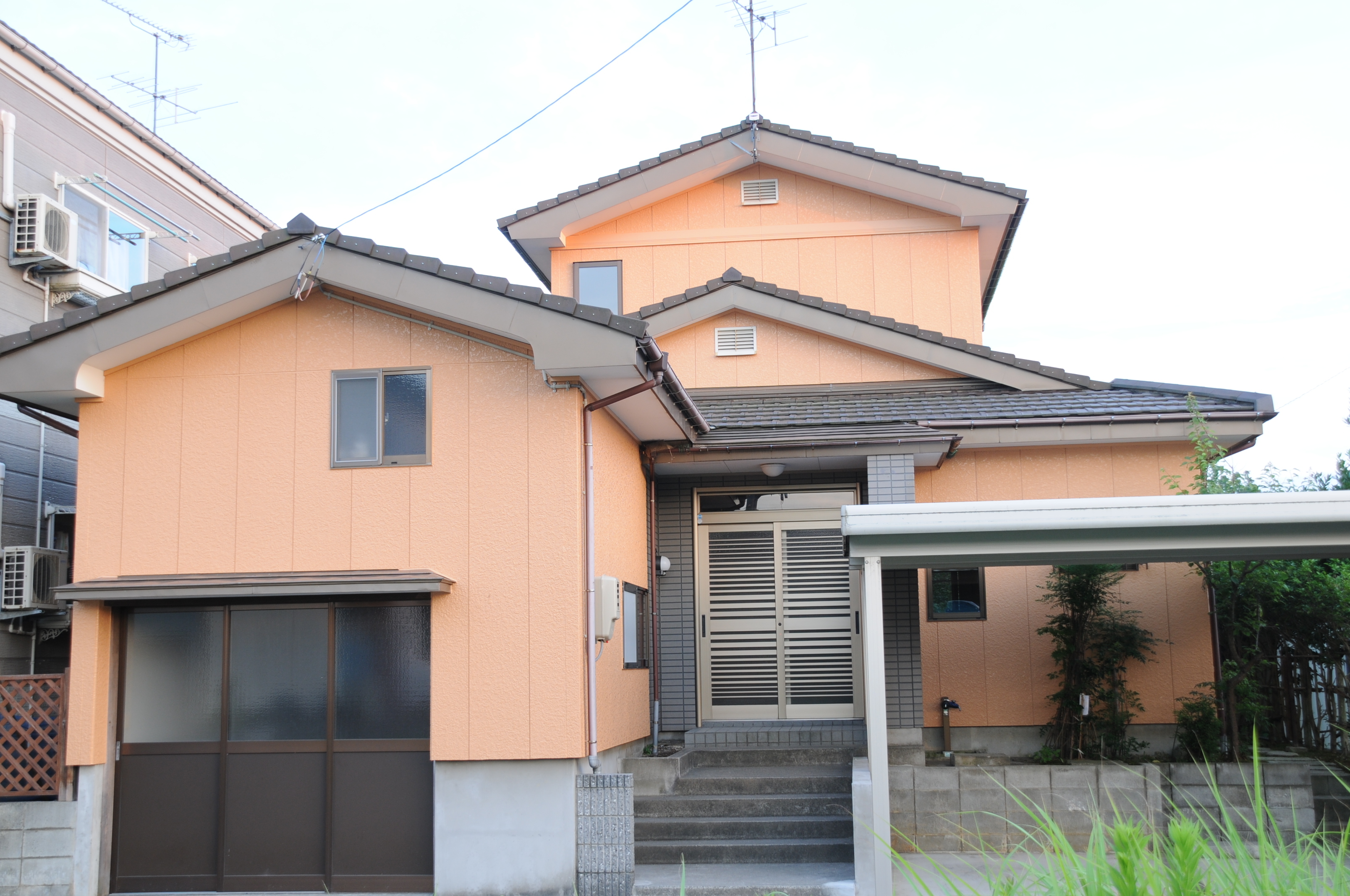 外壁はグレーからオレンジ系の色へ塗装しました。シーリングの打替えも行い、雨水浸入の心配もなくなりました。