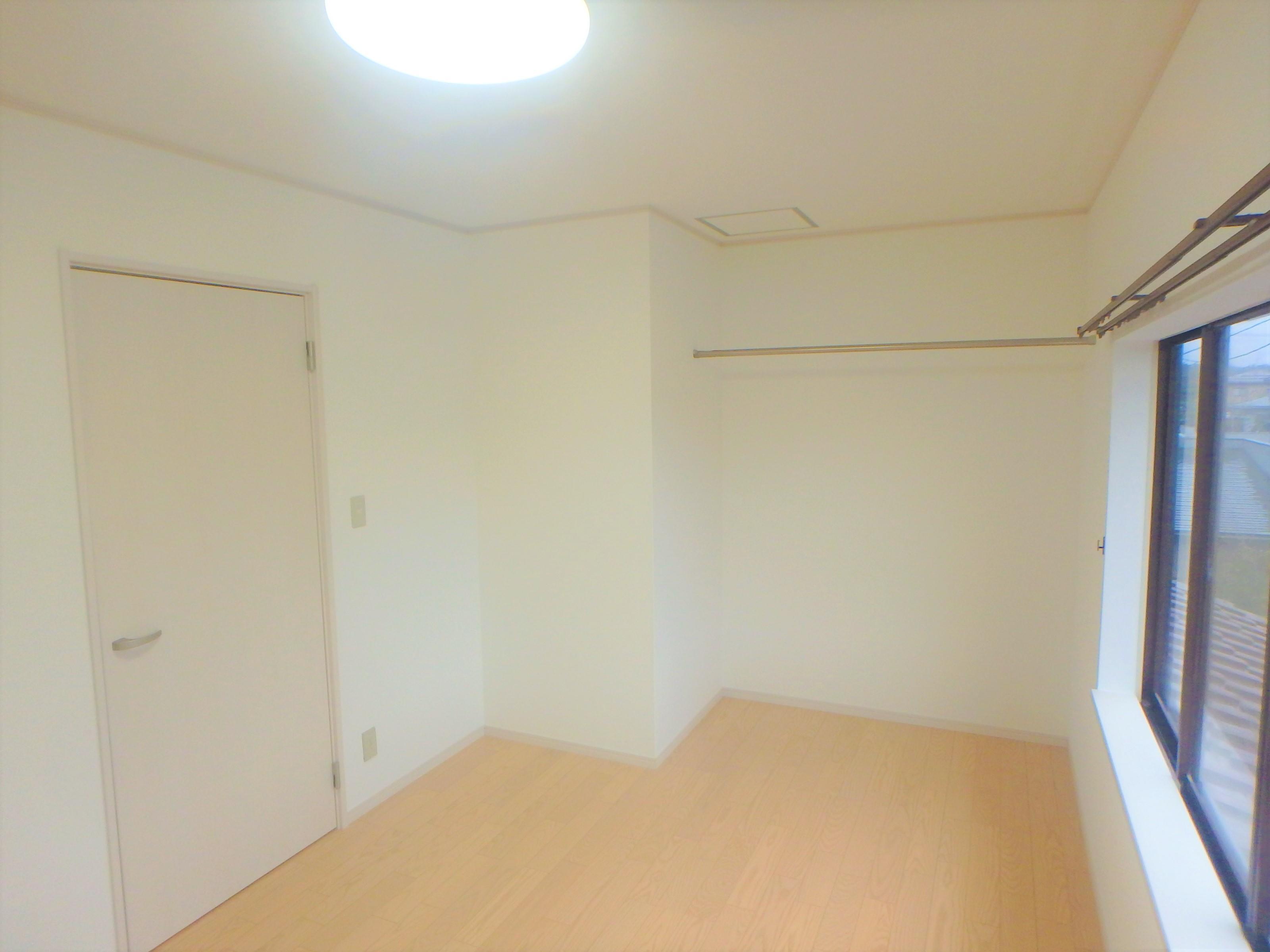 お子さまが春から中学生ということで、これまで使っていた和室を洋室へと大変身!建具と床材の色、壁紙はお子さまが1人で全て選定されました。ハンガーパイプの付いている箇所は、今後のライフスタイルに合わせてクローゼットであったり、ブラインドカーテン等が取付できるようになっています。