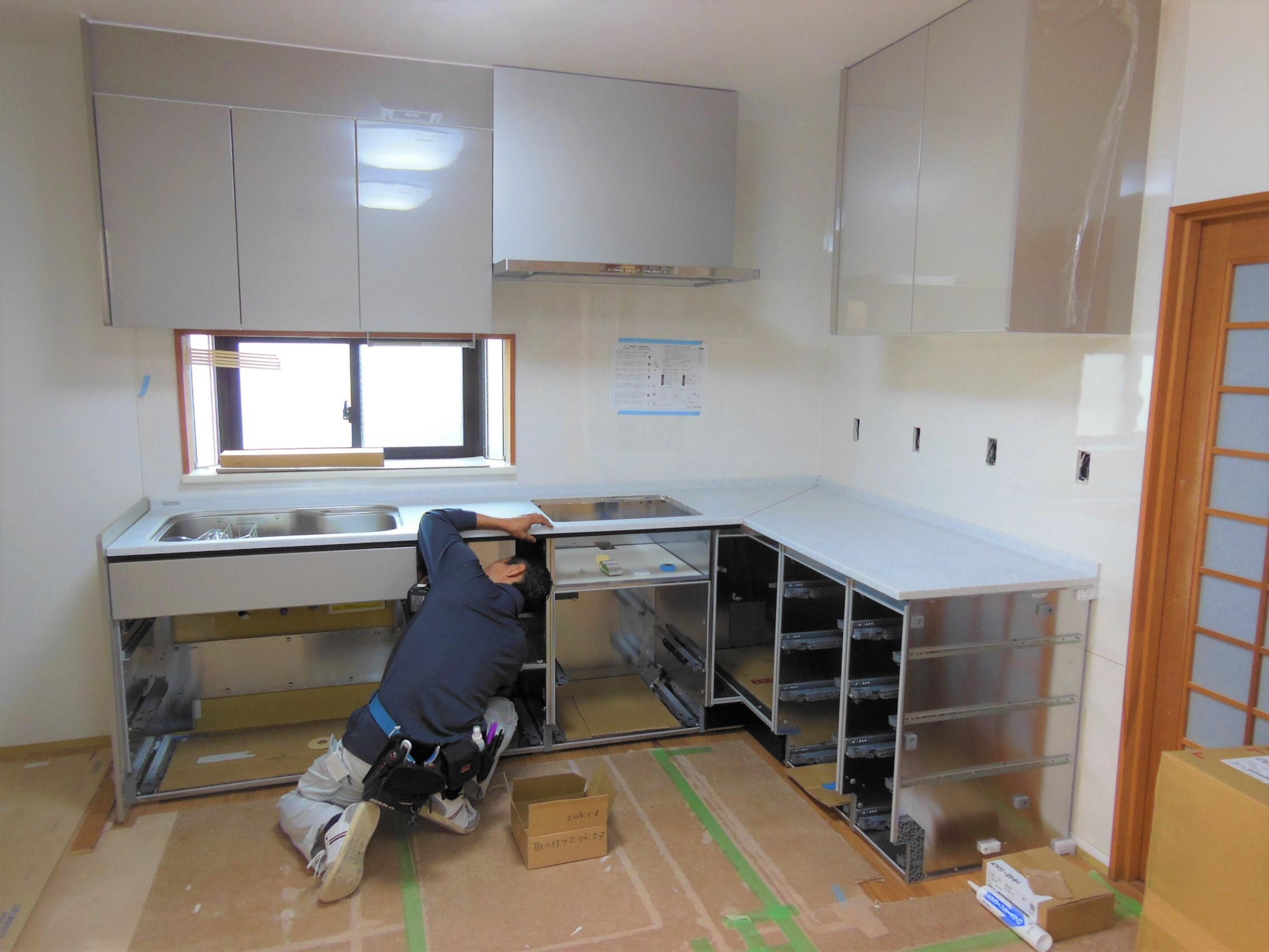 築15年経過しており、キッチン自体は汚れもなく綺麗ですが、中越沖地震の影響で収納部分1ヵ所に穴が開いてしまっていたため、リフォームさせて頂くことになりました。キッチン本体のお値段も高く、施工中にキズをつけないように細心の注意を払って、ていねいな作業を心掛けました!