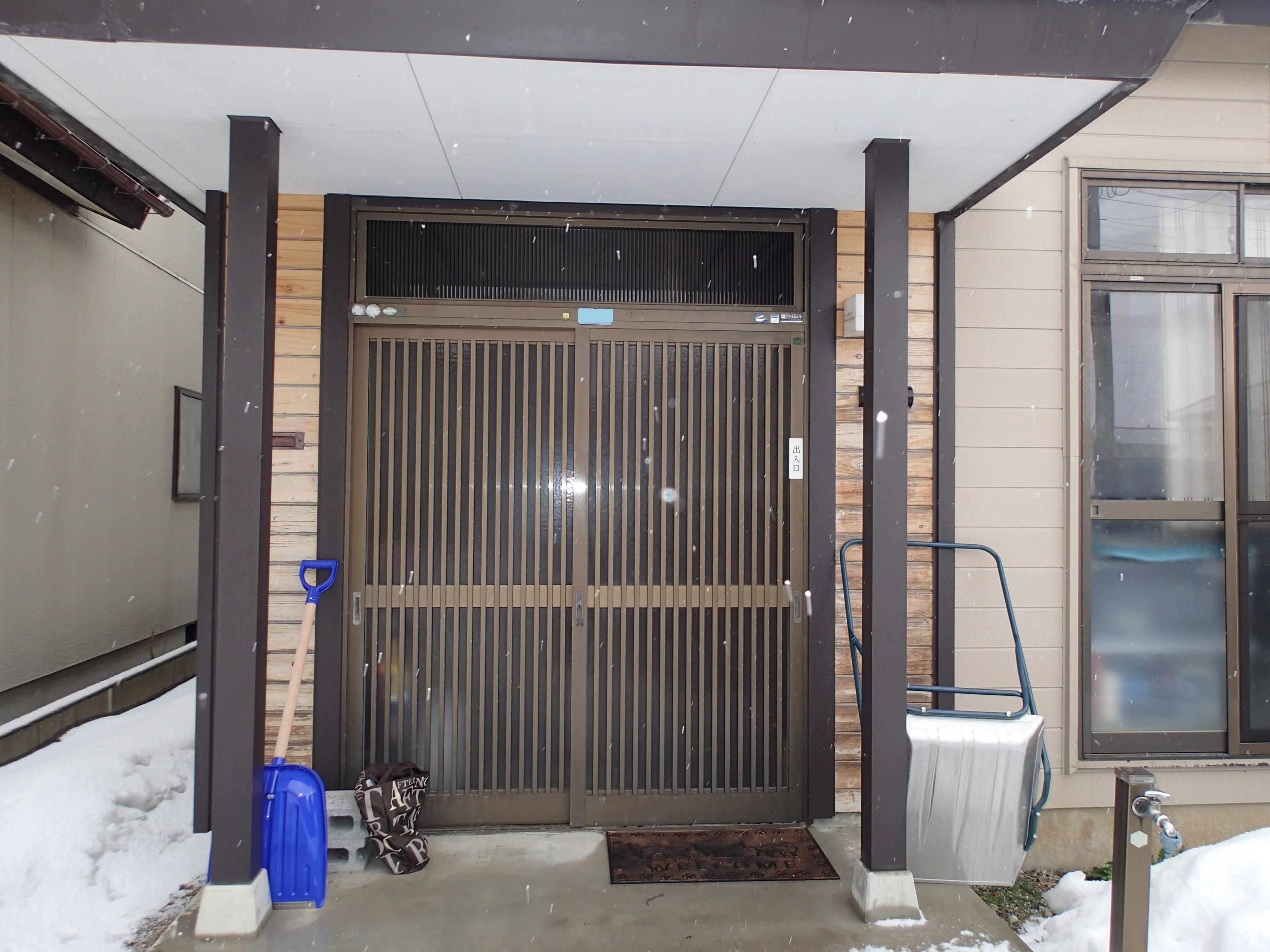 カバー工法で既設の玄関引違戸の障子を取外し、枠をカバーして新しい玄関引違戸の取付をしました。