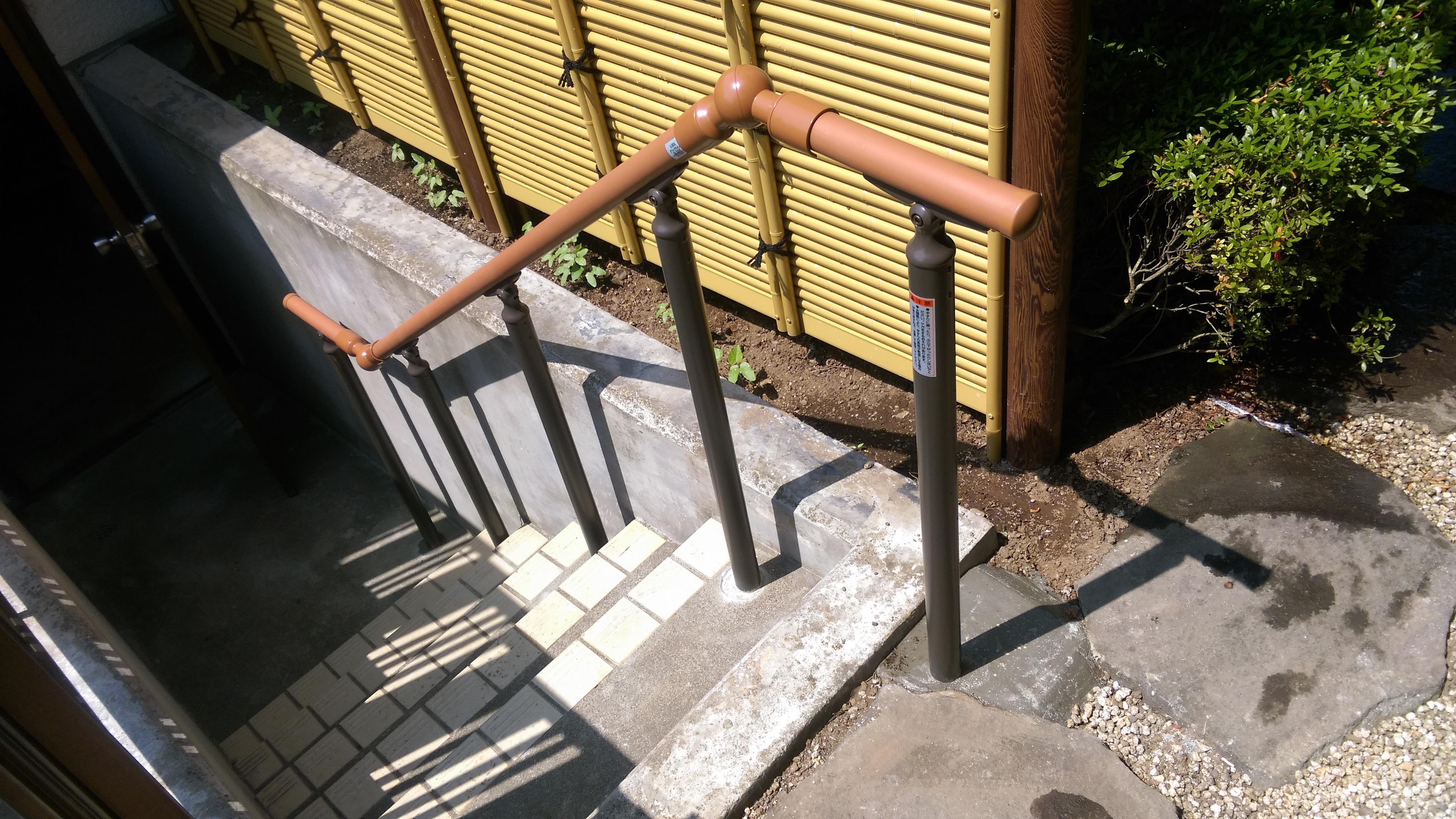 お住まいから階段を利用して車庫へ出入りするお家の手摺を設置しました。