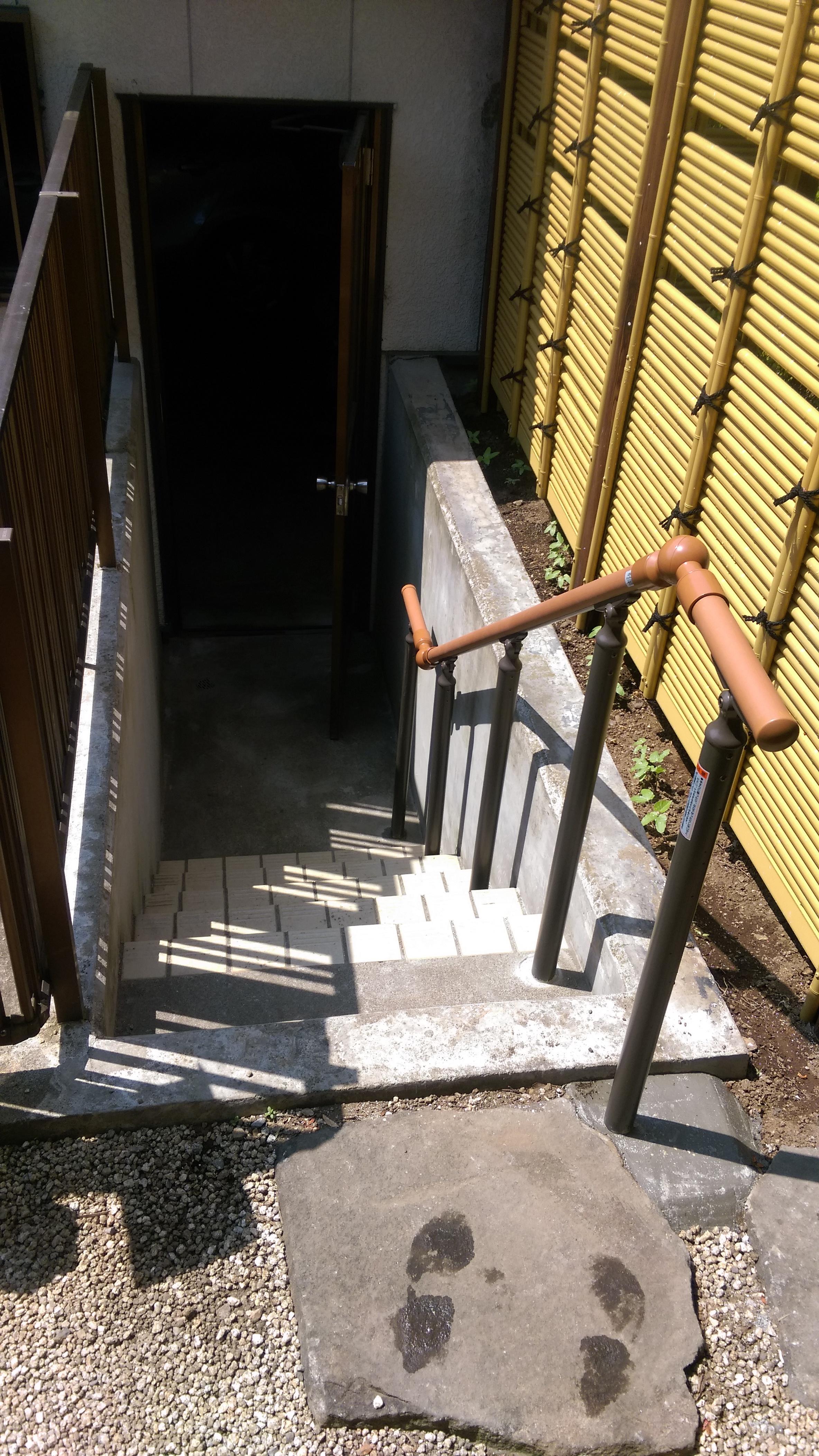 外階段に手摺を設置して、明日までコンクリートの固まり待ち。明後日からご利用ができます。