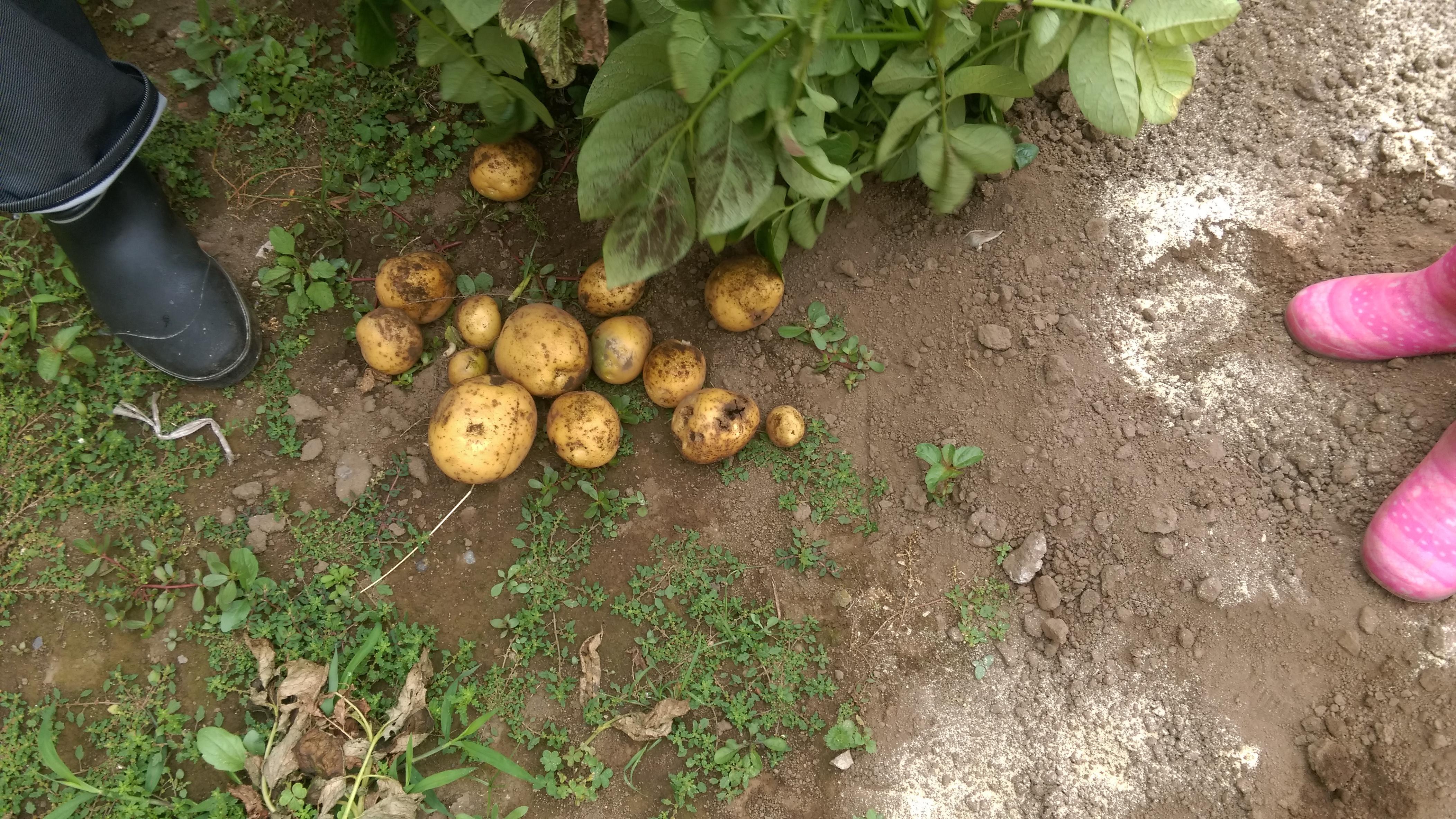 一覧へ戻るこんにちは。今日は朝7時前から、庭のジャガイモ掘りをしました。