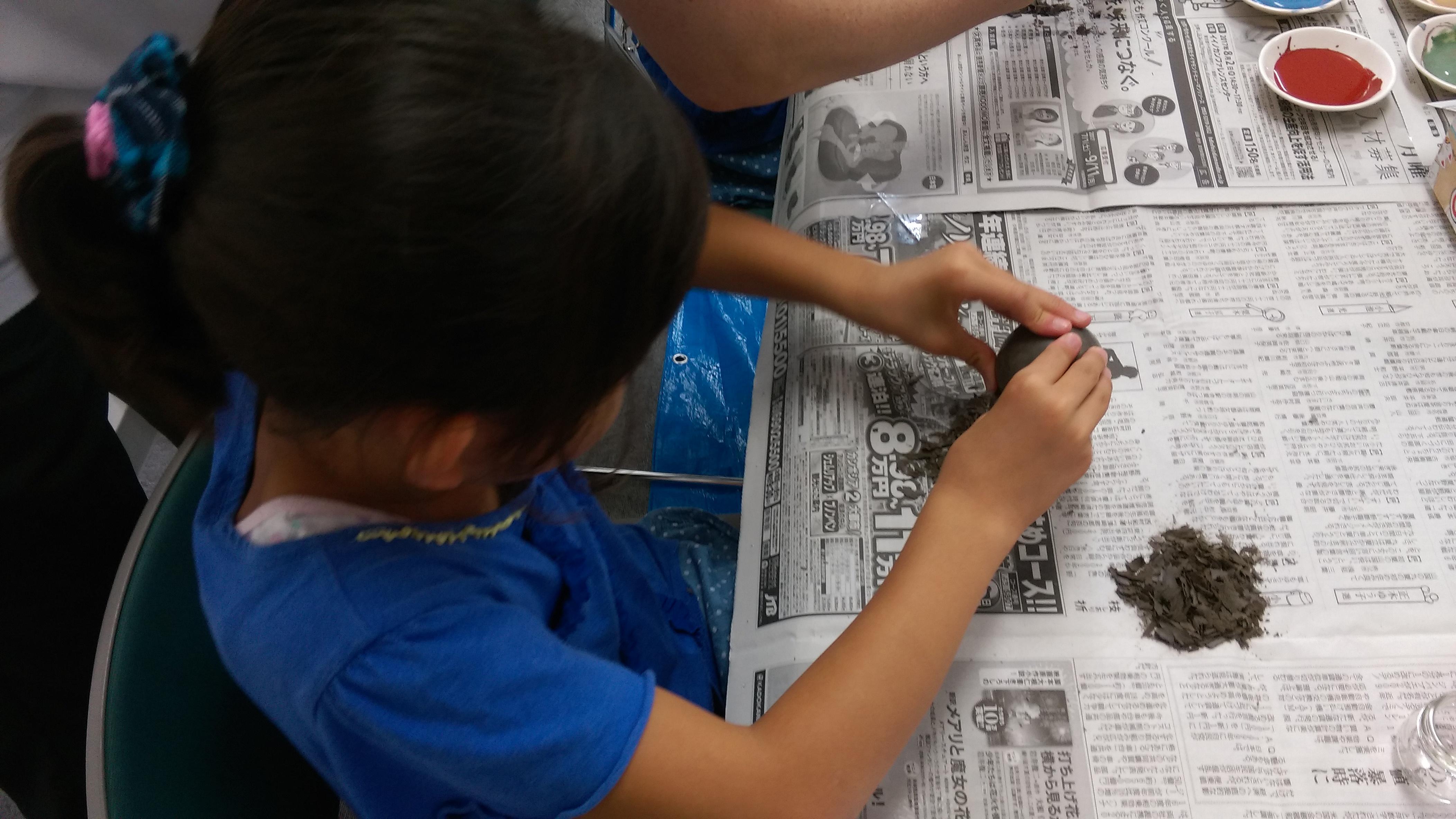 まずは"光るどろだんご大会"にて、どろだんご作り。
