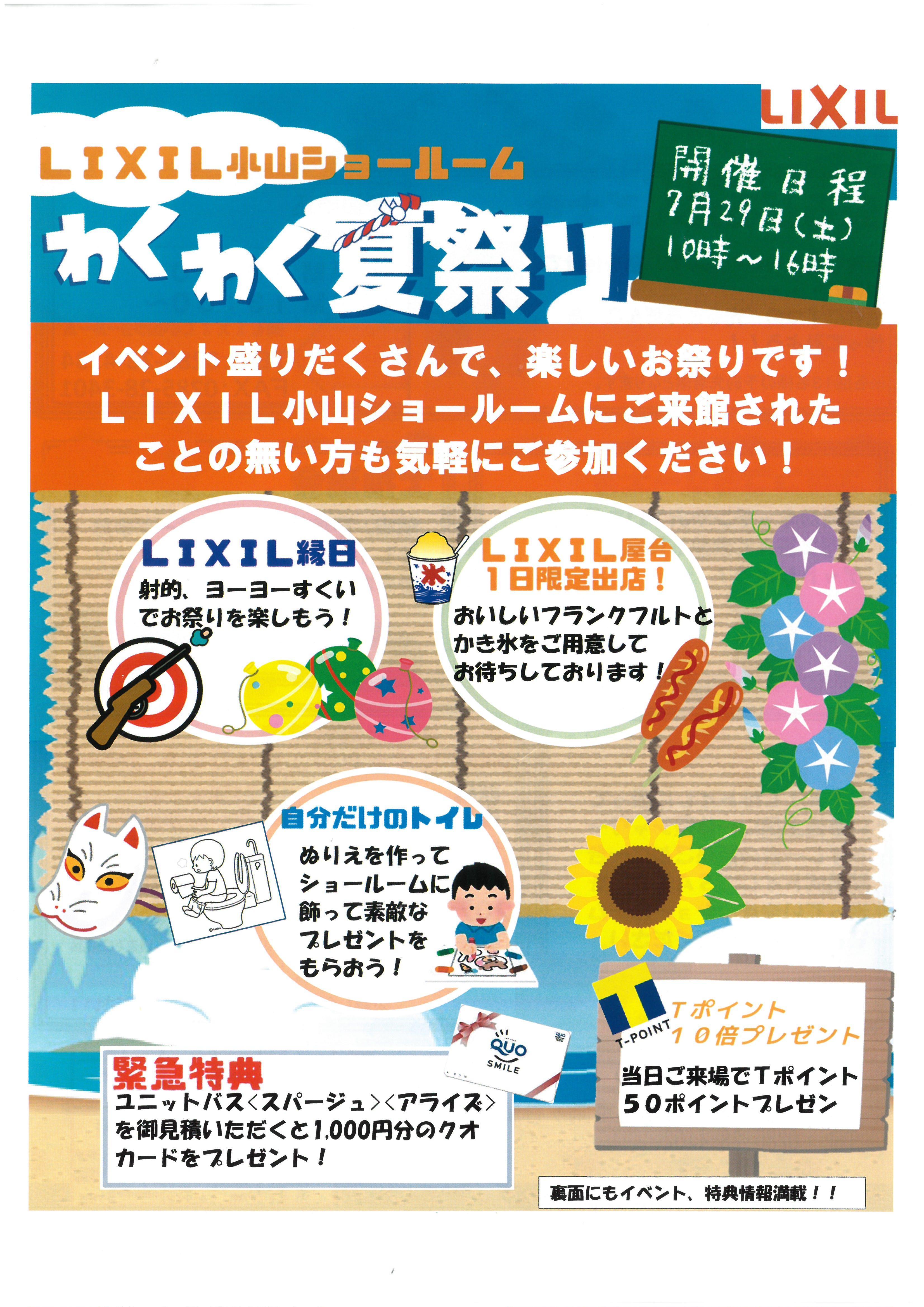 昨日、LIXIL小山ショールームのイベント『わくわく夏祭り』に参加しました。