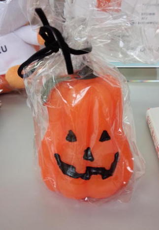 今年はこれでハロウィーン気分です。ちなみに3点で1100円でおつりがきました。