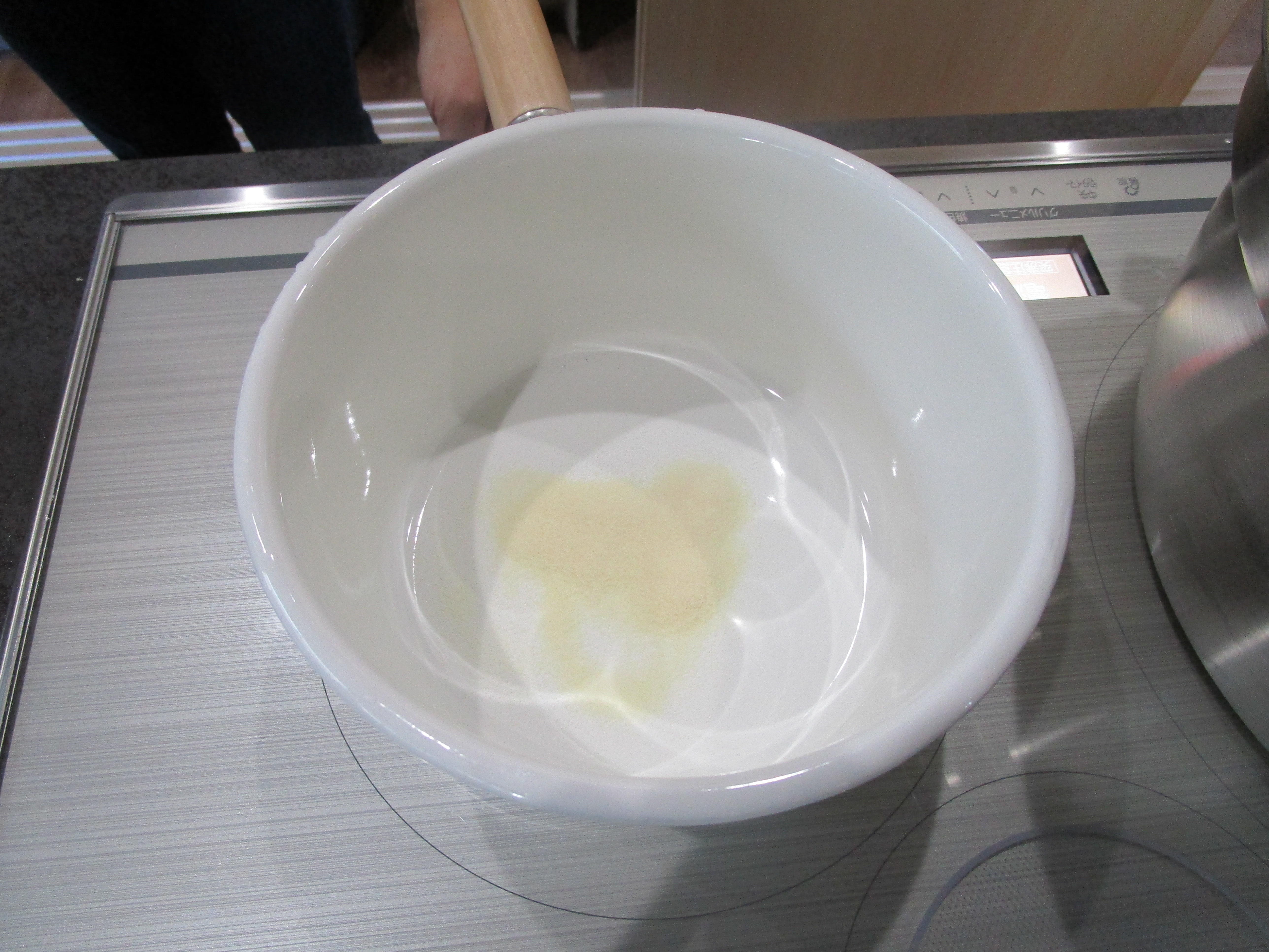 ④ ①のふやかしたゼラチンを湯煎にかけます