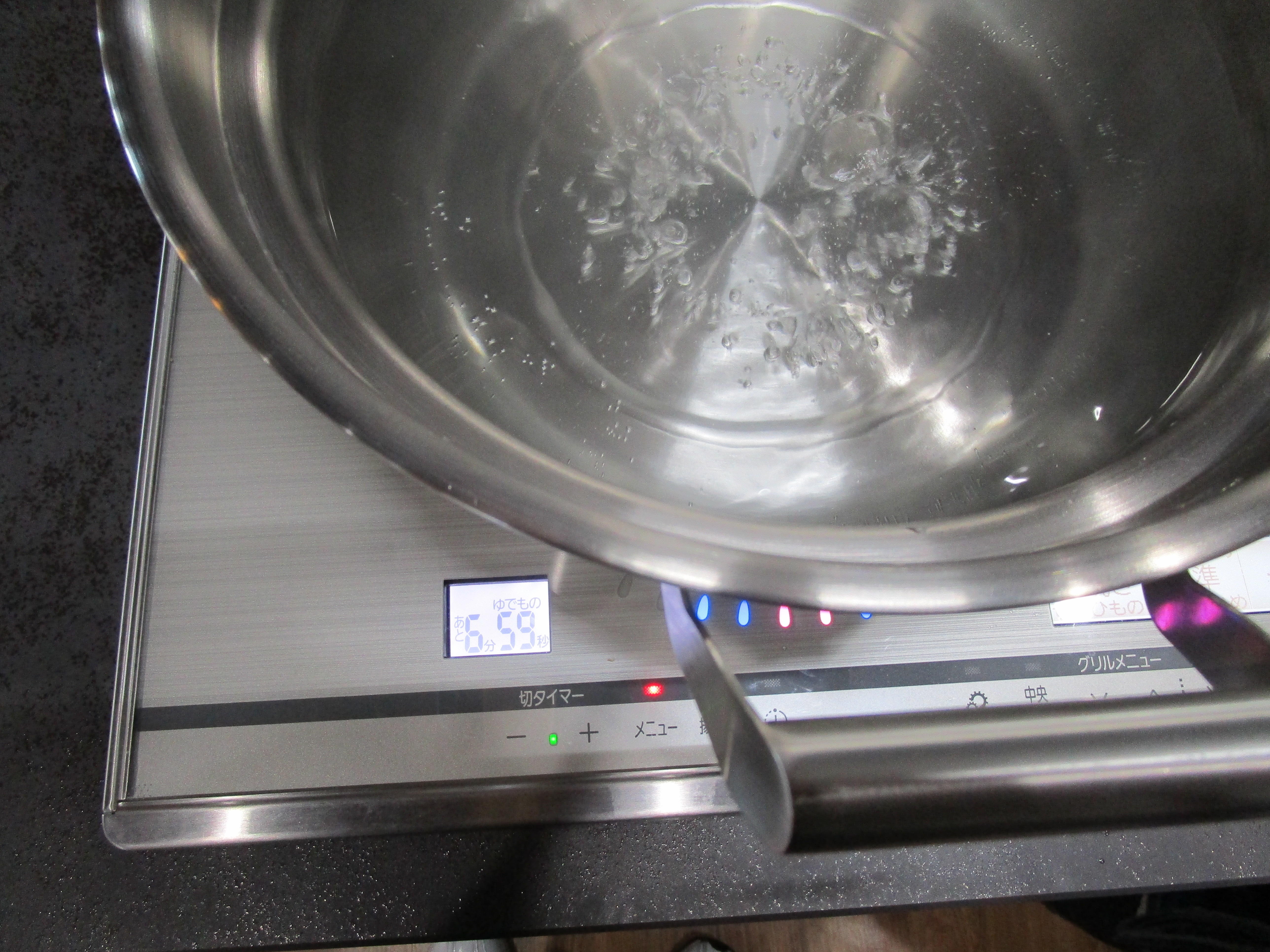 ④ 湯が沸いたらひとつまみの塩を入れてパスタを茹でる。その際に一緒にブロッコリーも茹でると一石二鳥ですよ