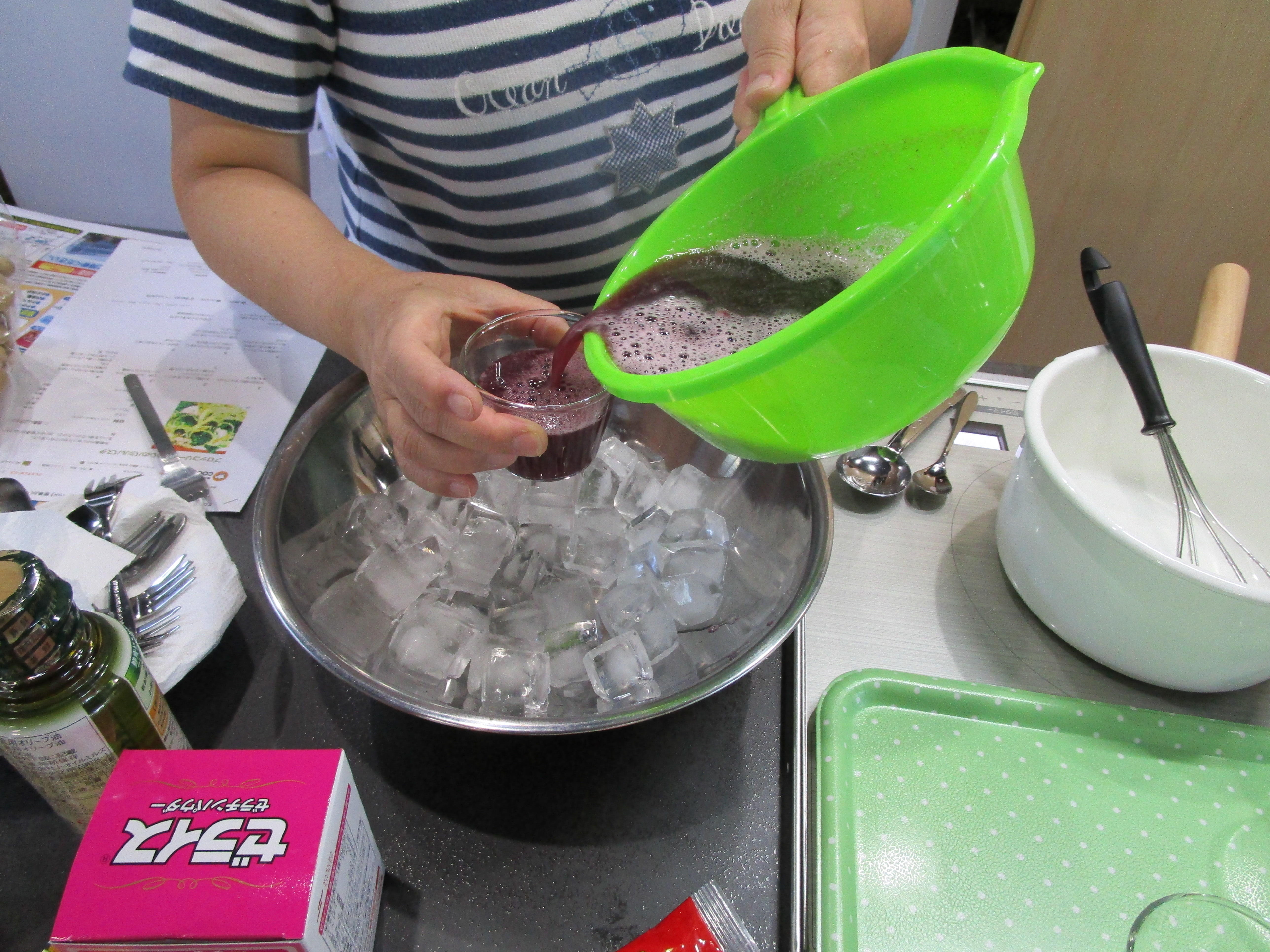 ⑤ ③と④を混ぜ、とろみがつくまで氷で冷やしながら混ぜます