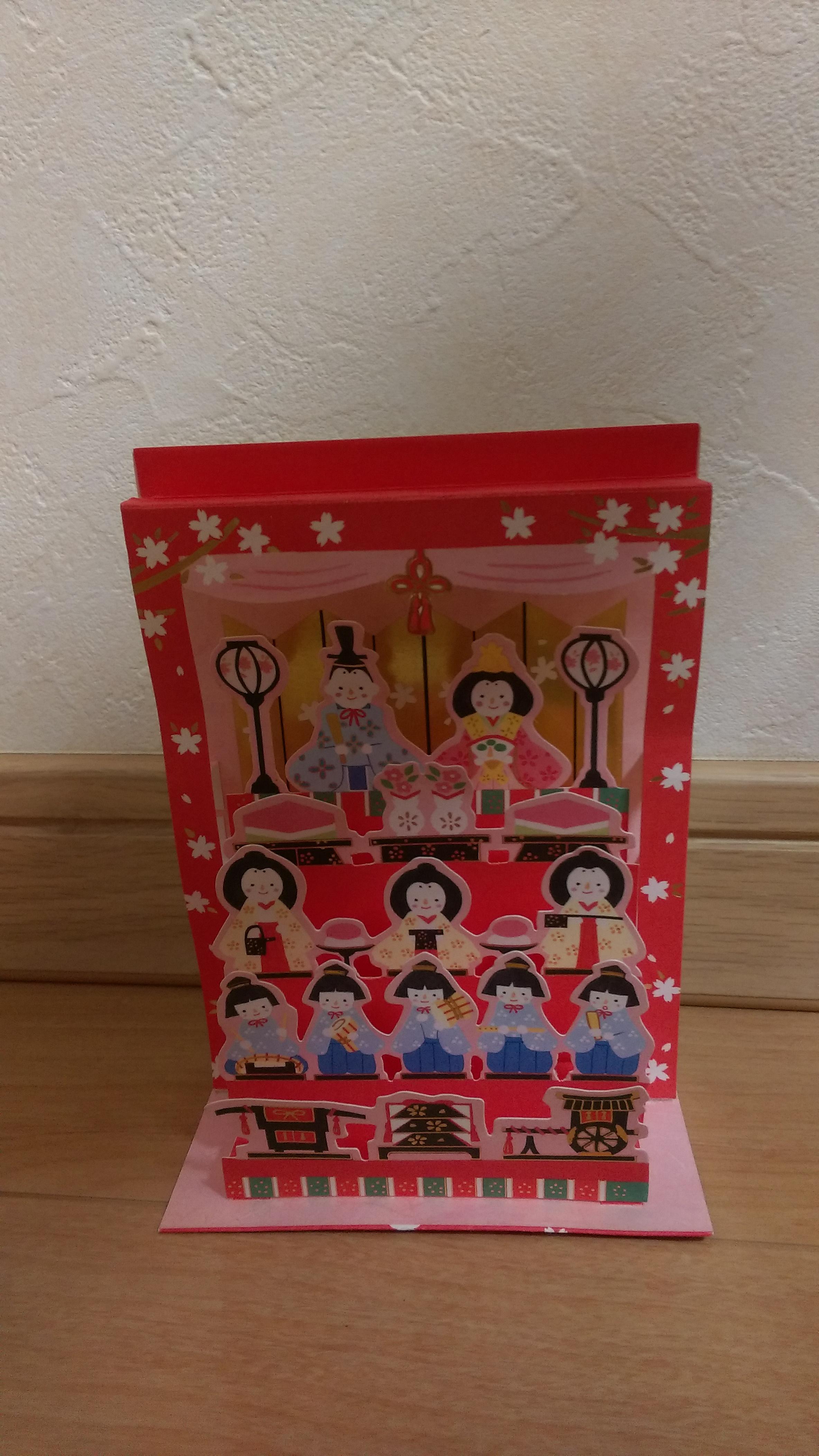 親戚から封筒で届いた"おひなさまカード"も