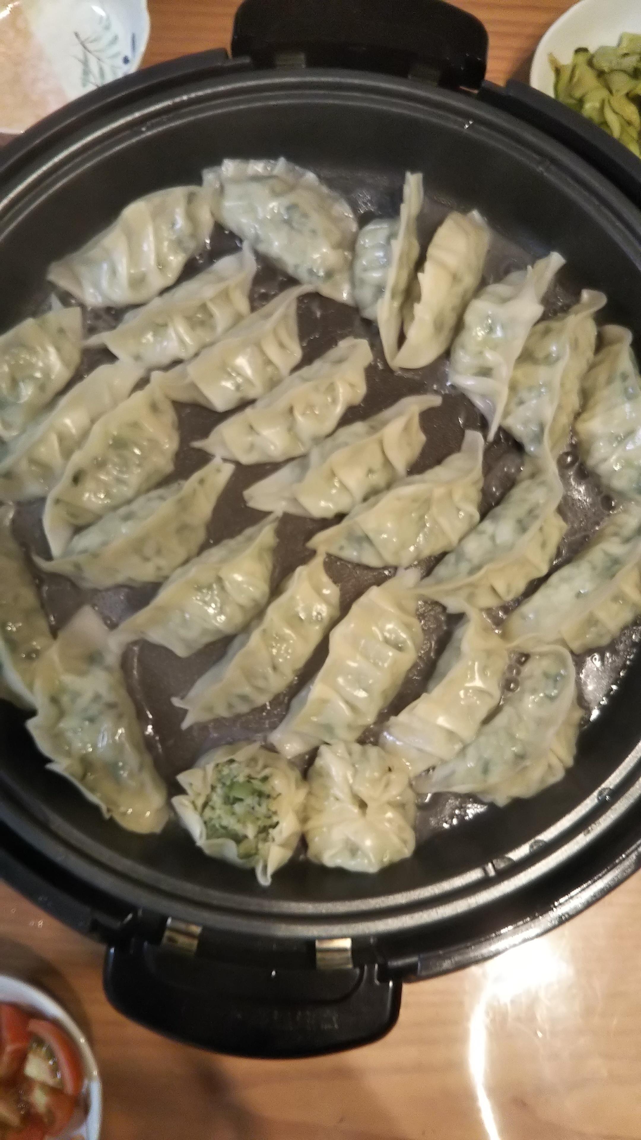 おや???子供が作った餃子...一つだけ、焼売みたいなのがありました(ー_ー)!!