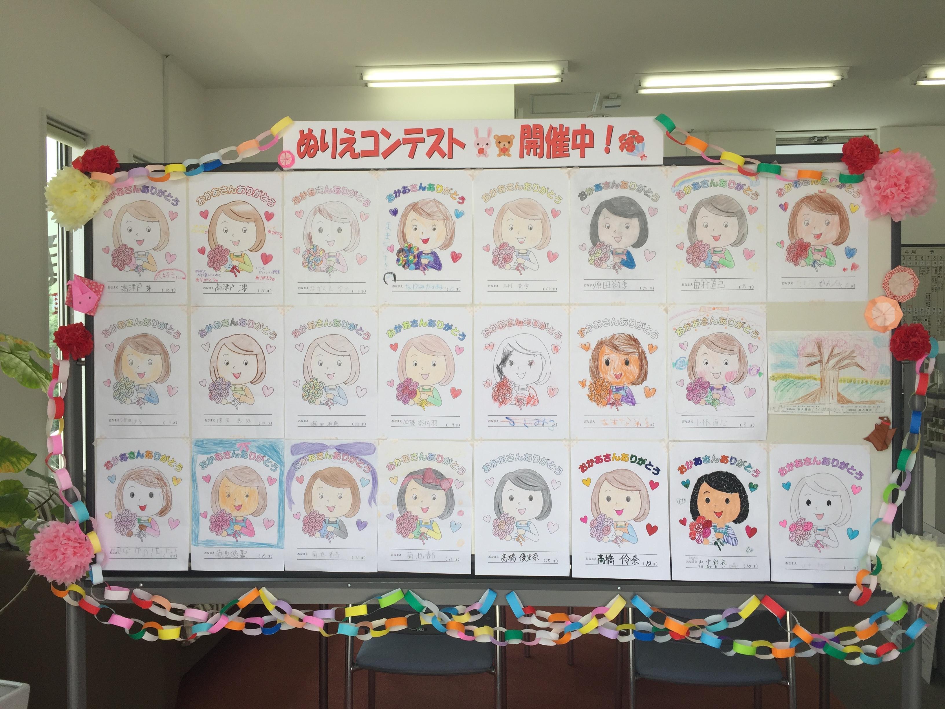 皆様から応募していただいた、『母の日のぬりえ』を展示しました♪