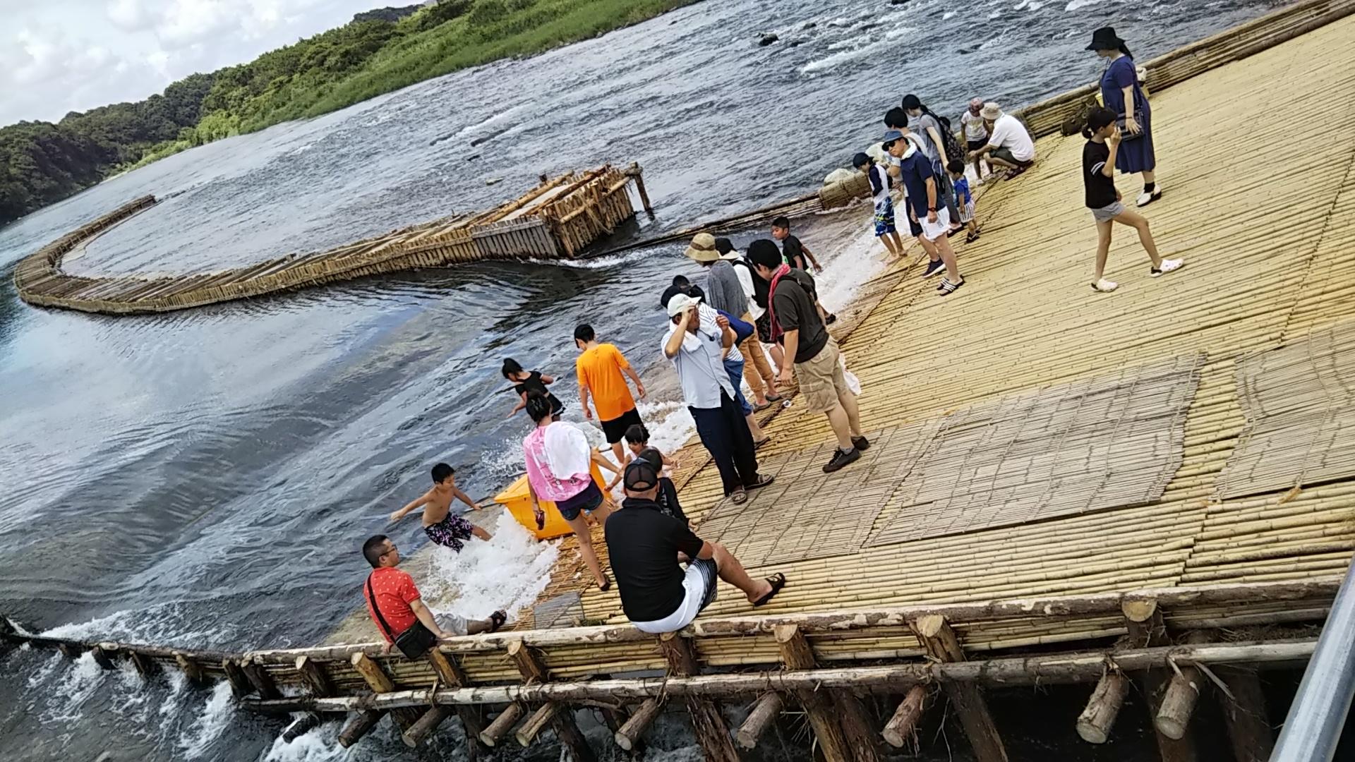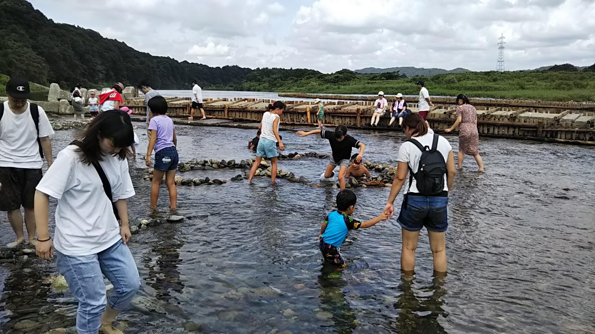 子供たちは簗場で遊んで、焼けるのを待ちました。