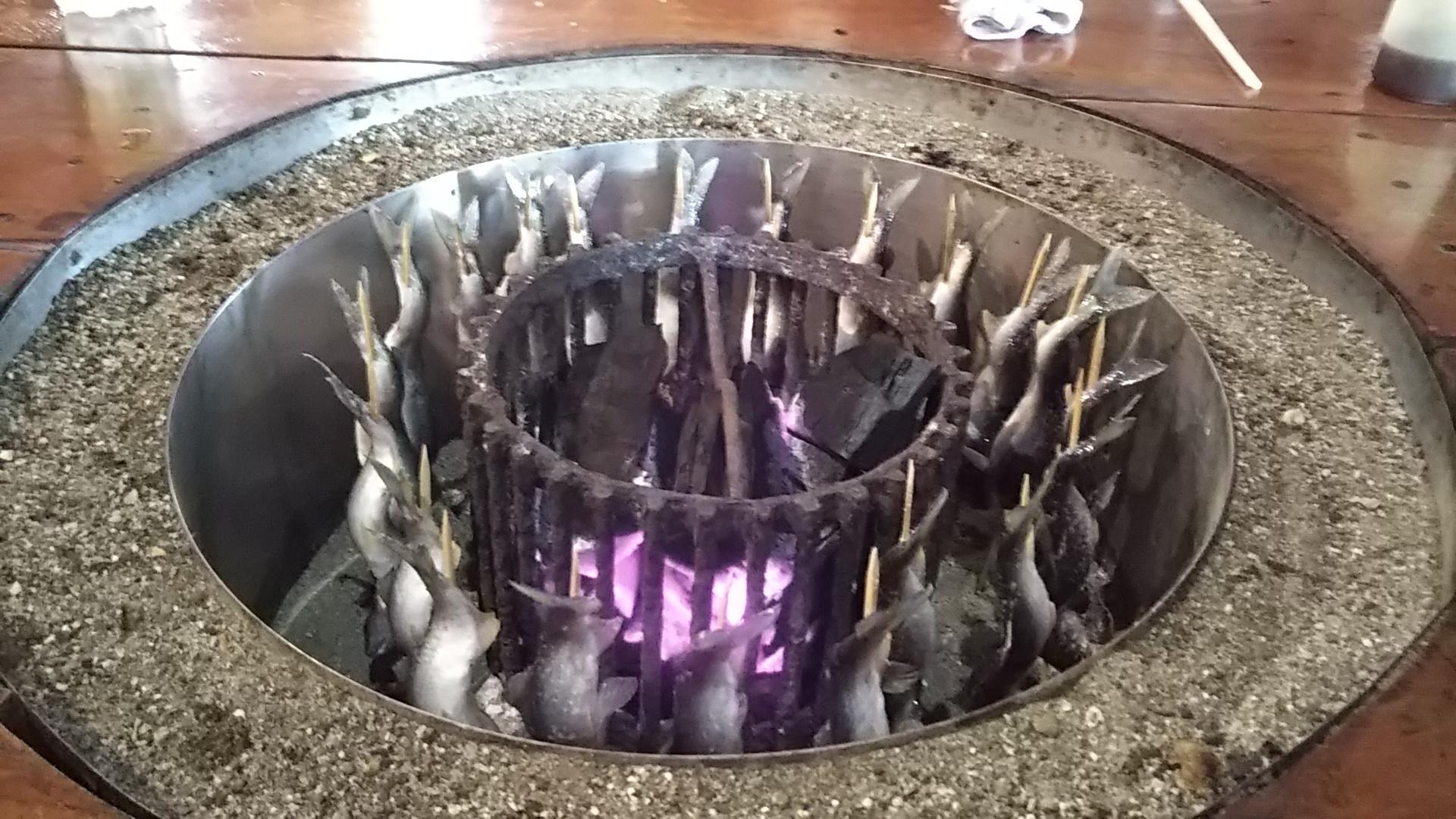 炉端の煙に涙しながら、鮎を焼いて、たくさん食べました!