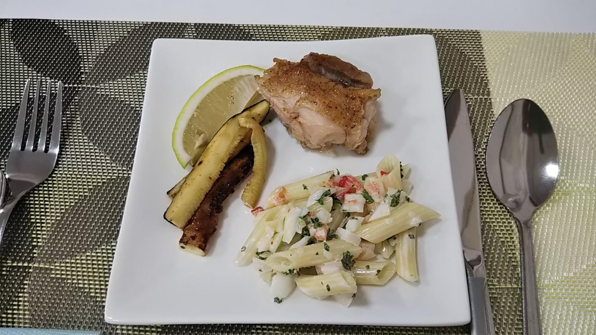 (ちなみに今回のメニューは、①簡単ドリア ②若鶏もも肉のフライパングリル ③マカロニサラダ ④バニラプリン でした♪どれも美味しくできましたよ!)