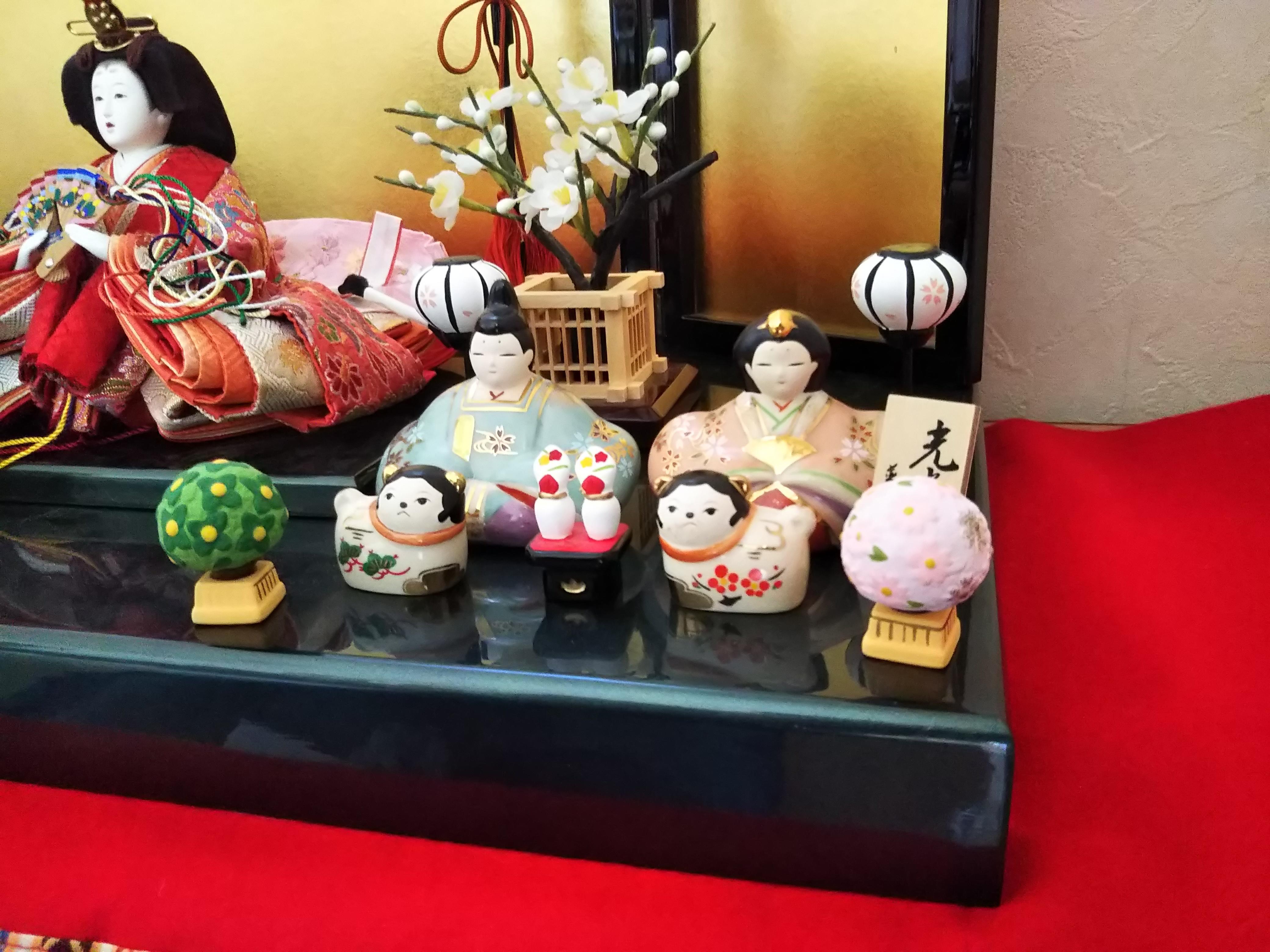 毎年一緒に瀬戸物のひな飾り・ミニミニひな飾り・カードタイプひな飾りも飾っています。