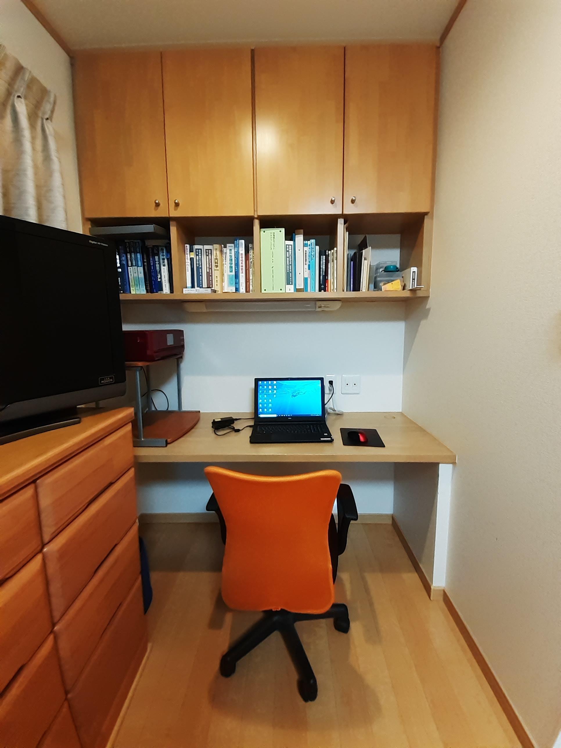 造り付けのデスクや本棚、とても快適で落ち着く空間です。