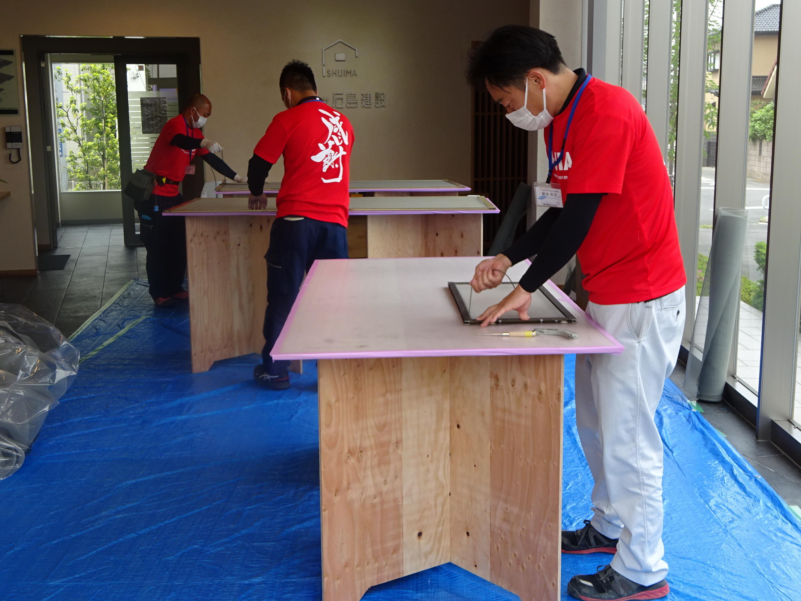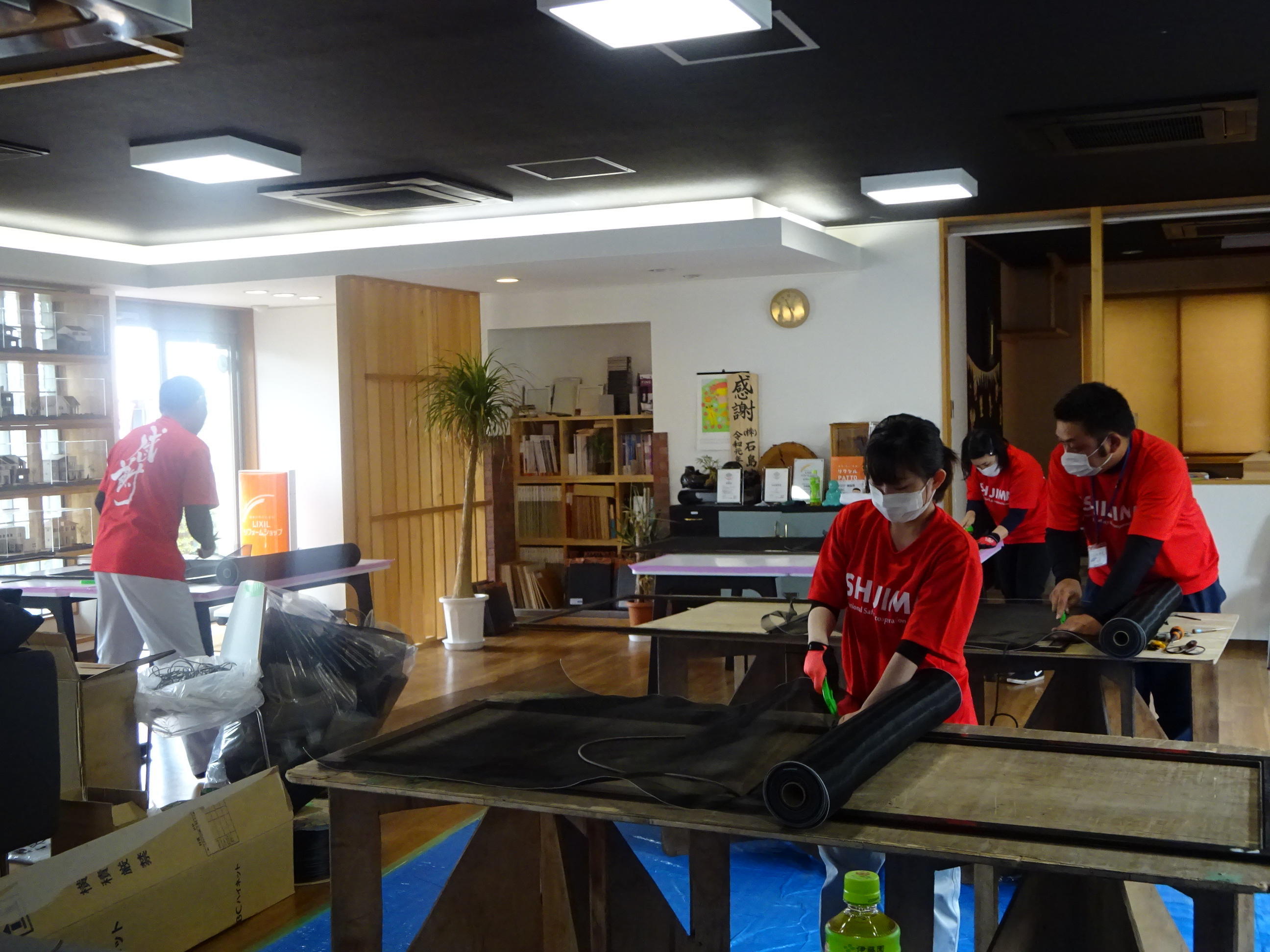 事前に網戸張替研修を行い、当日はスタッフも職人さんとともに