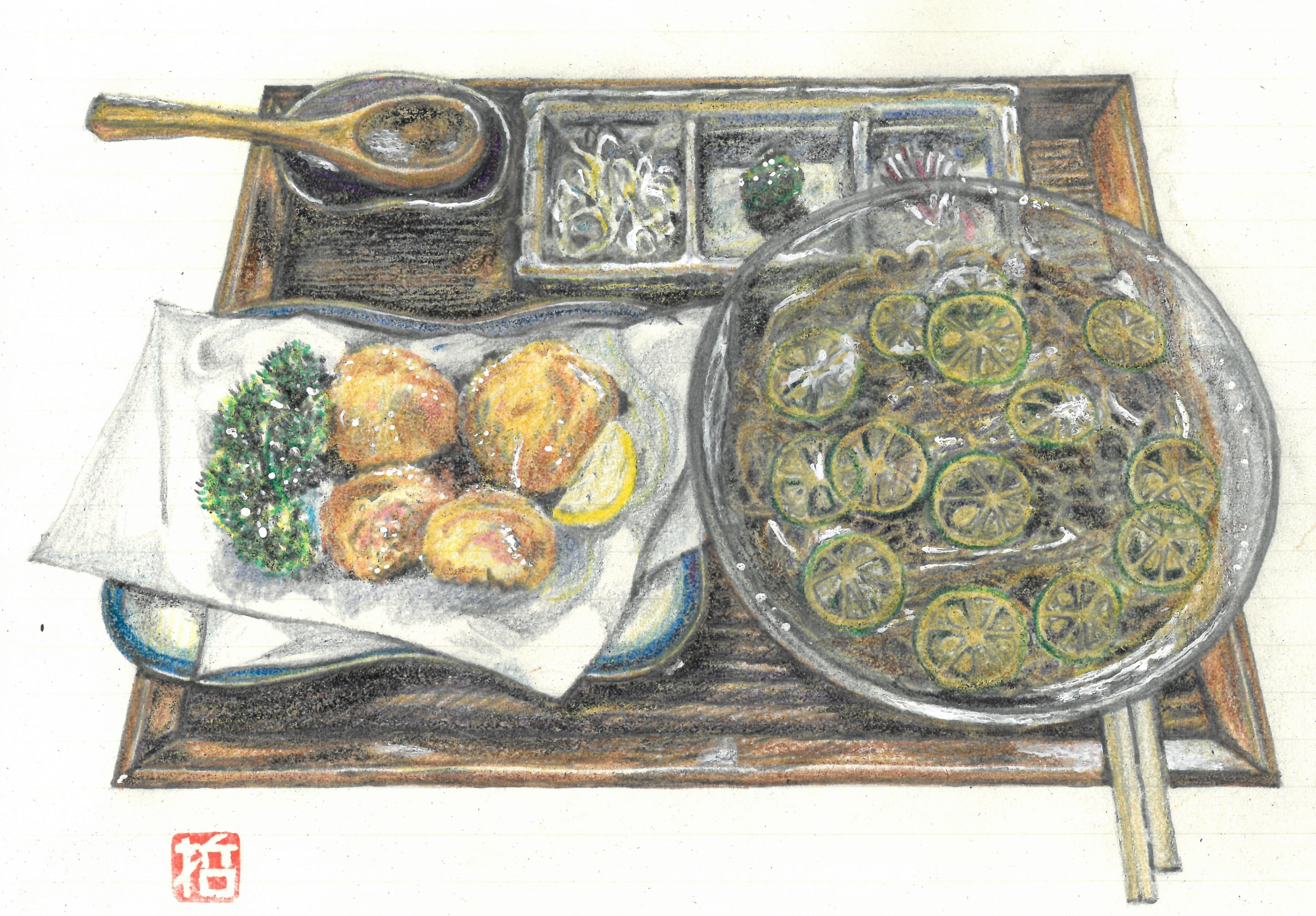 水出しの汁に、酸味が効いた『すだち』がたくさん浮いています。