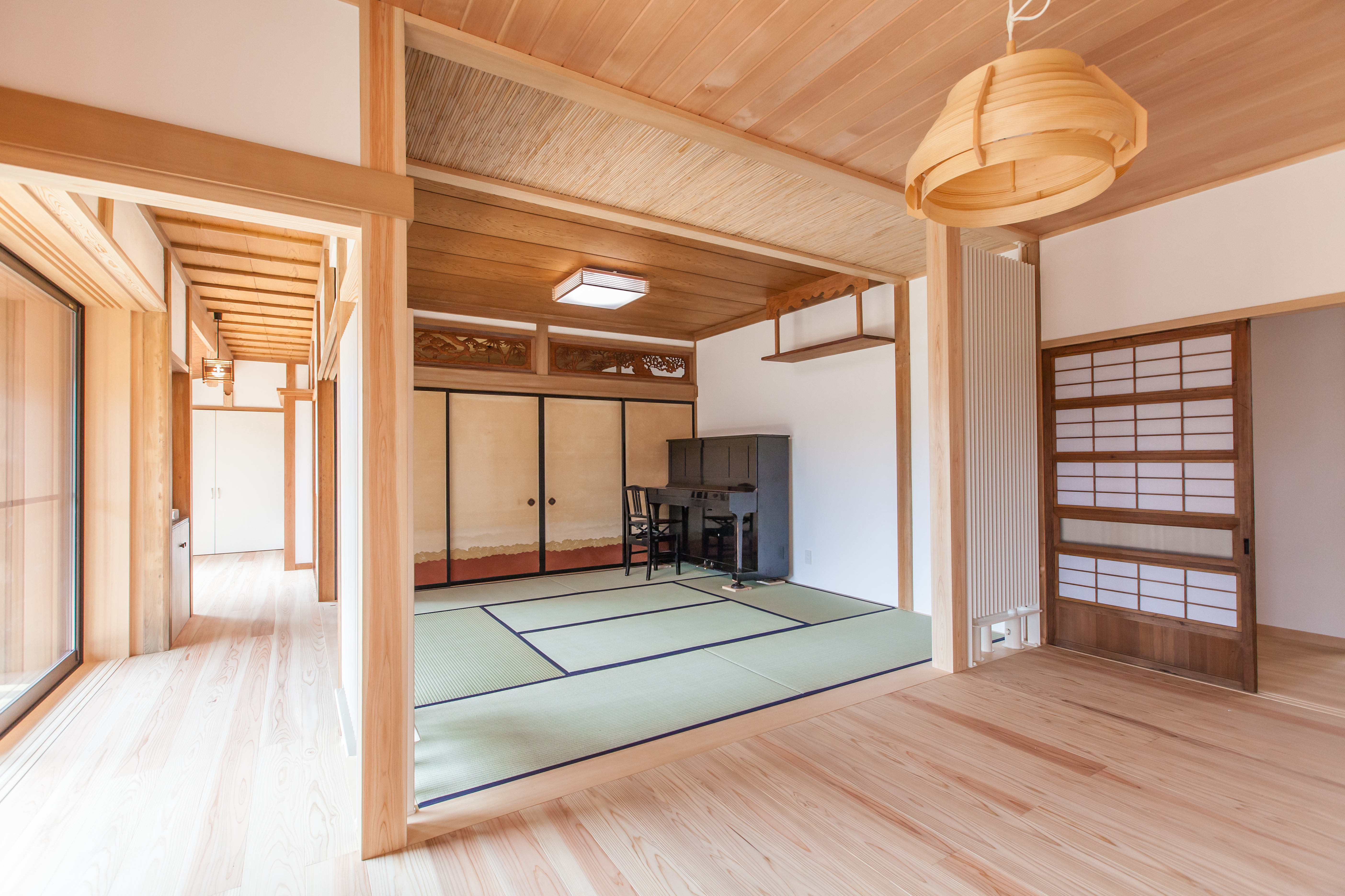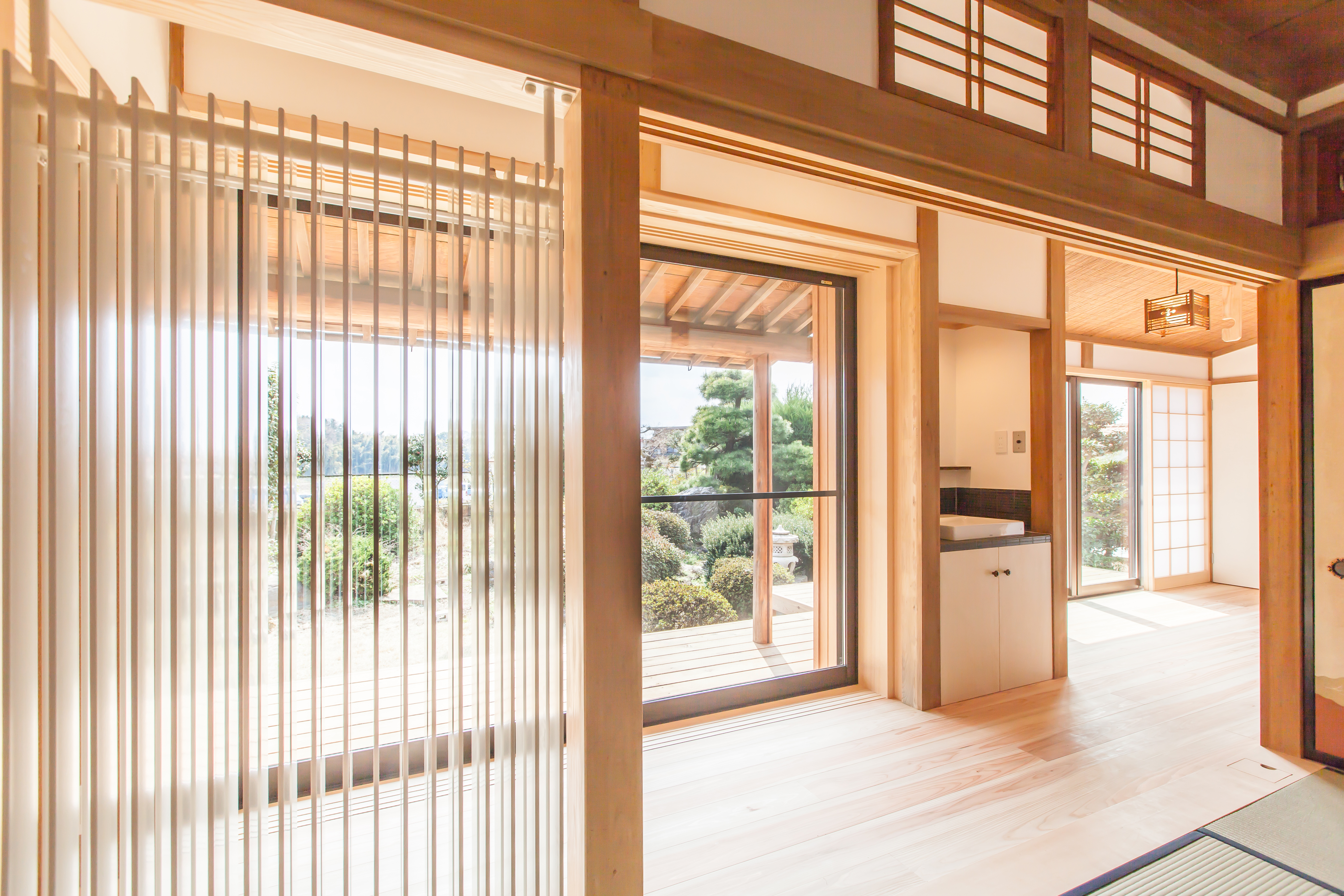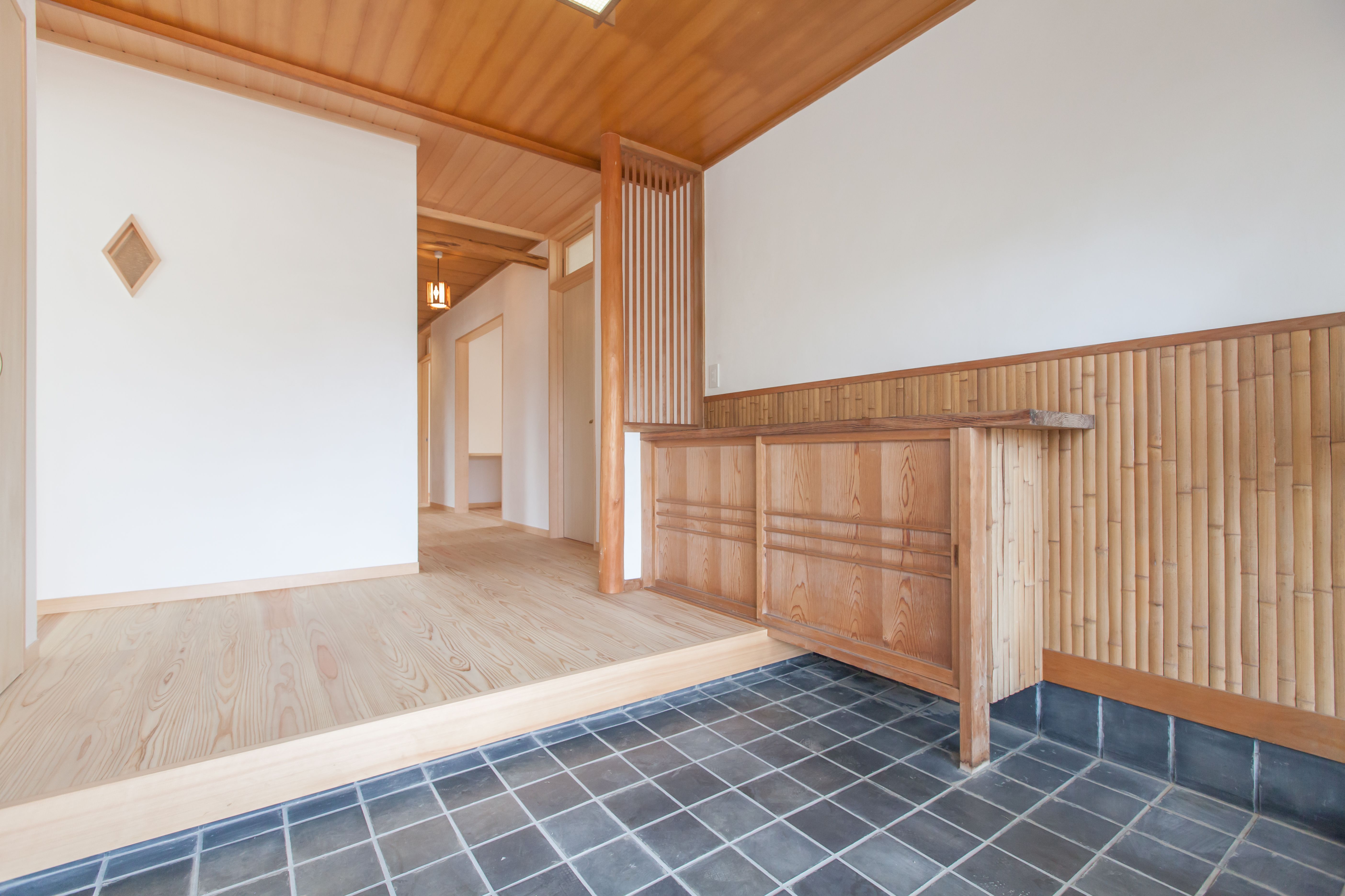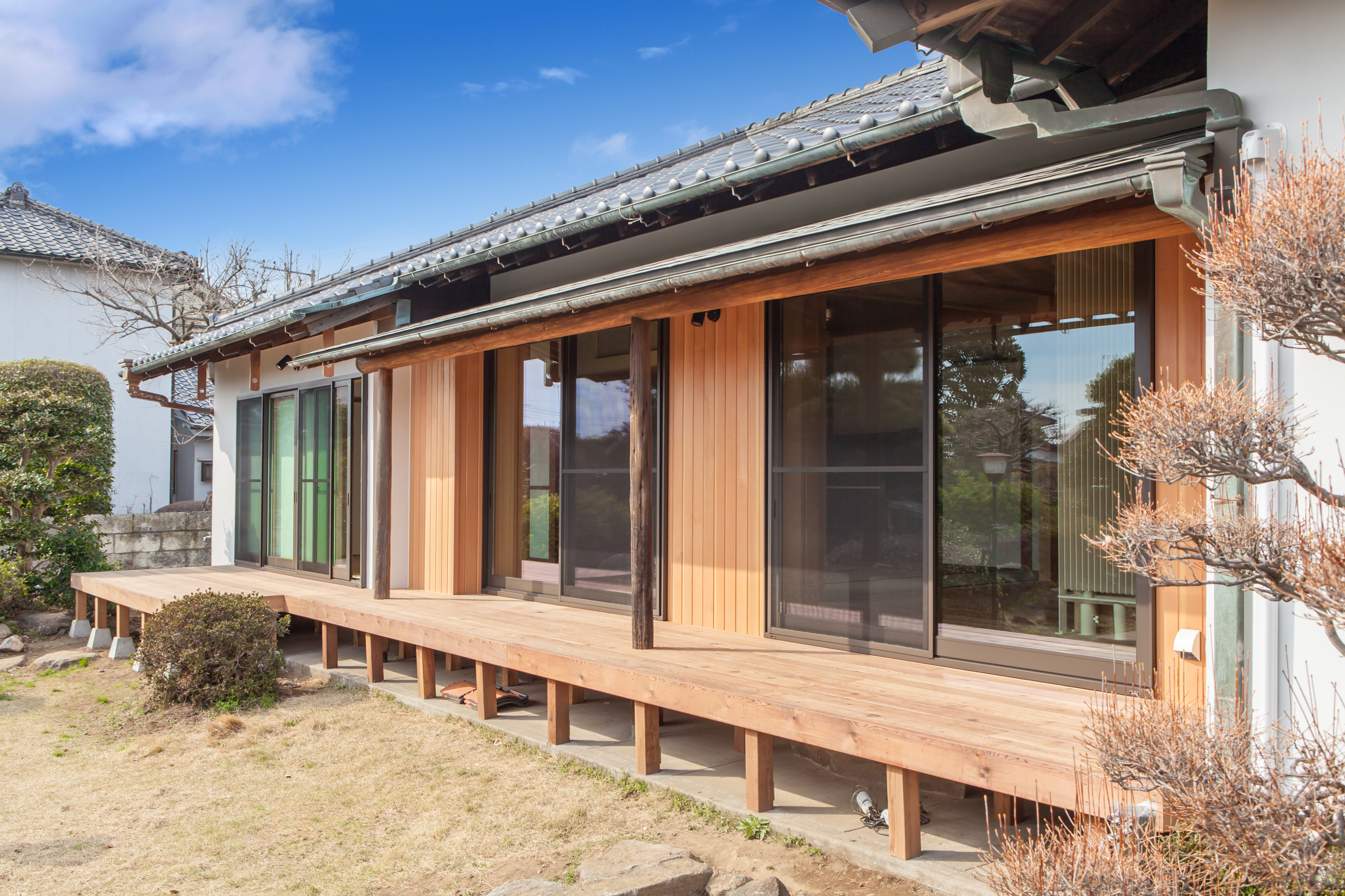 今回改修した建物は、築35年を超える本格的な和風住宅です。素材や建具など細部に当時の技術が随所に見られ、落ち着きのある佇まいになっています。建物のもつ魅力を残しつつも、自分たちのライフスタイルに合わせた間取りの変更が求められました。また、自然素材の使用や環境にこだわりのある住まいがリフォームの条件でした。