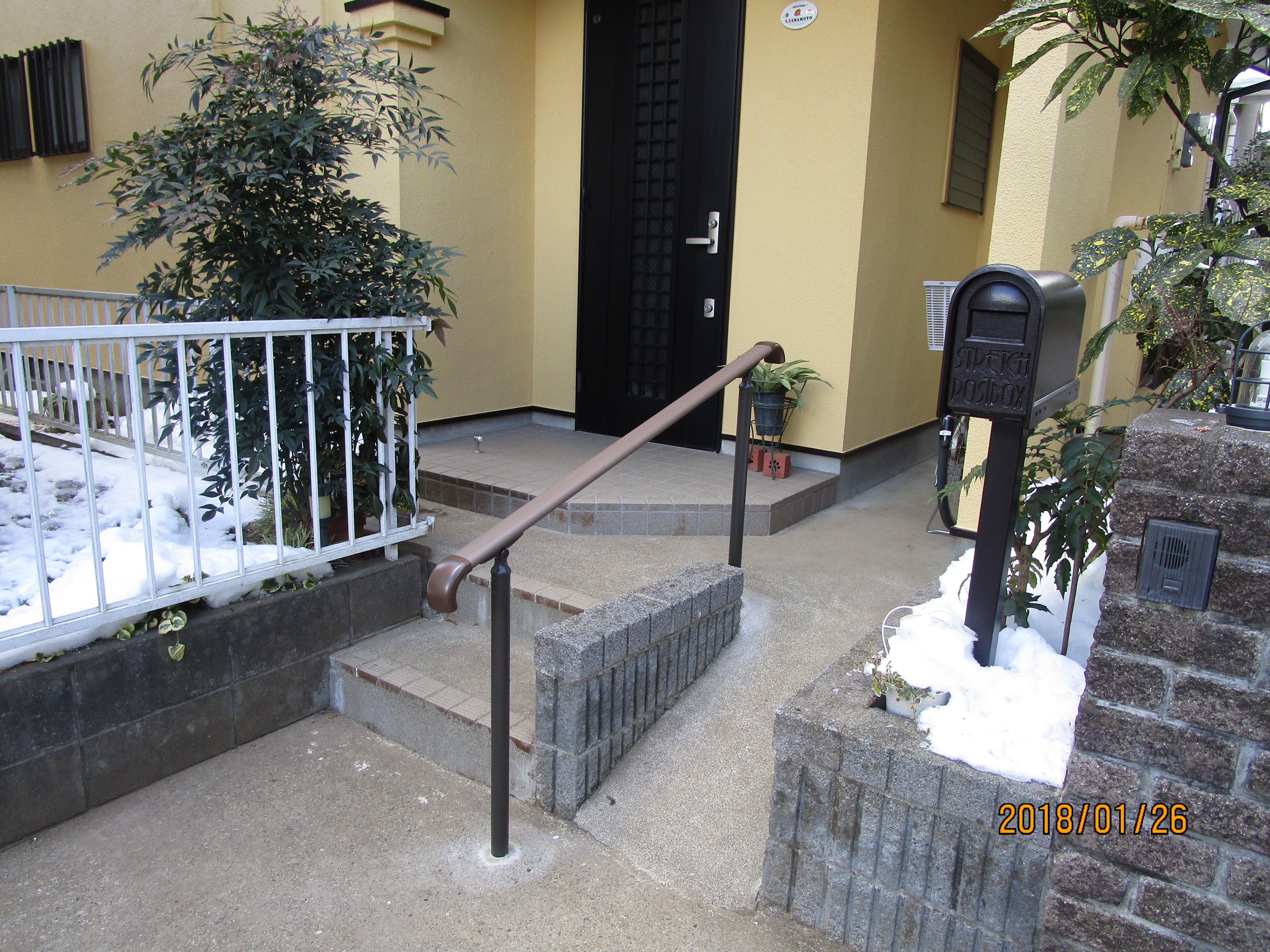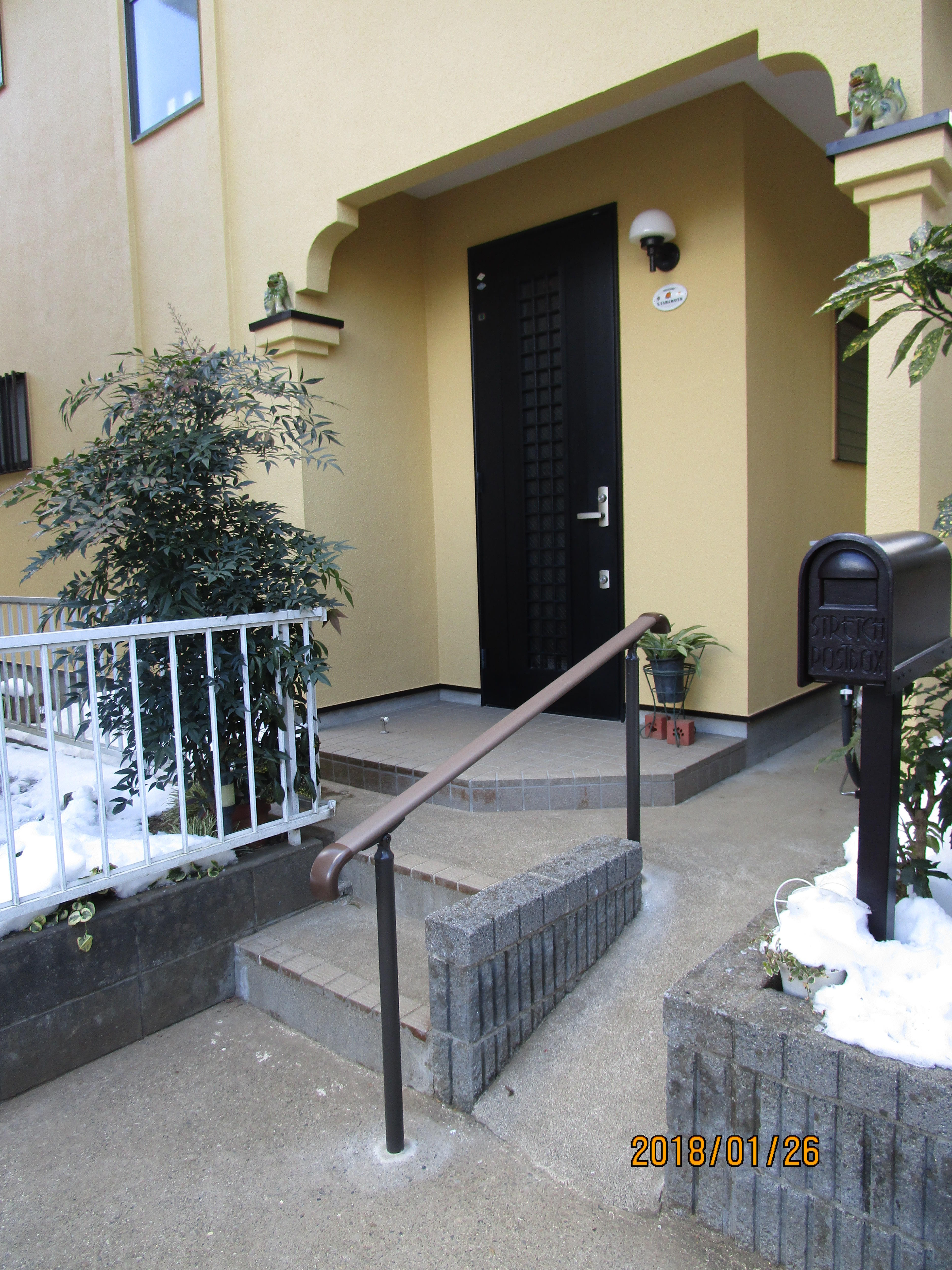 我が家のケアマネと石島建設の担当者が連絡を取り合って工事をしてくれました。市役所への手続きも石島建設の担当者がやってくれました。工事の前に、長さや色のことなど相談にものってくれて、写真にイメージのイラストも描いてくれました。イメージ通りに手摺が付いたので良かったです。雪の日や外が凍っている日も安心して歩くことができます。家族が安心して利用できる工事となりました。