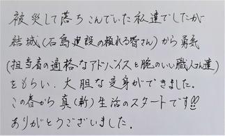 お施主様直筆のコメントをいただきました。 ↓↓↓ご覧ください。