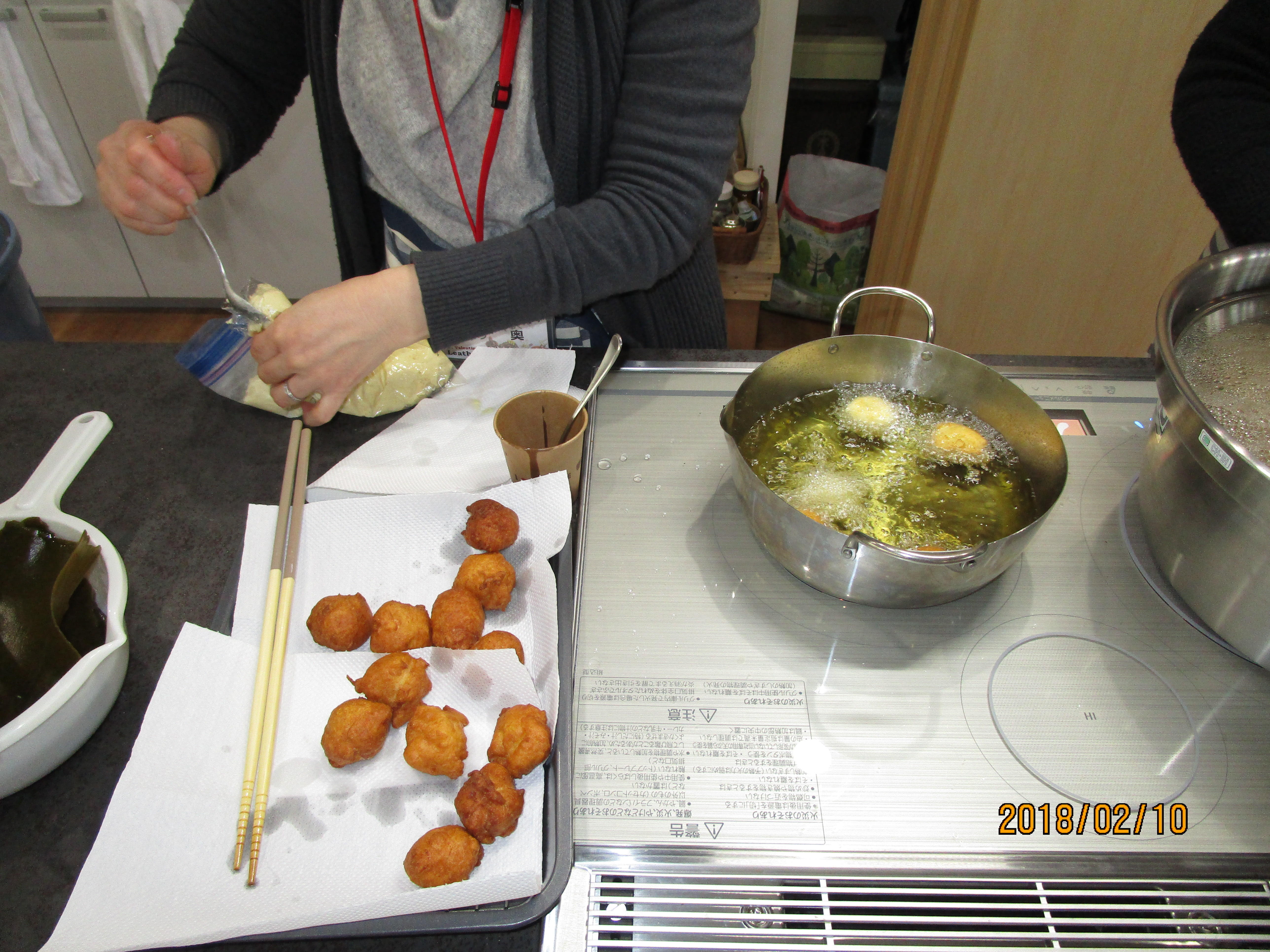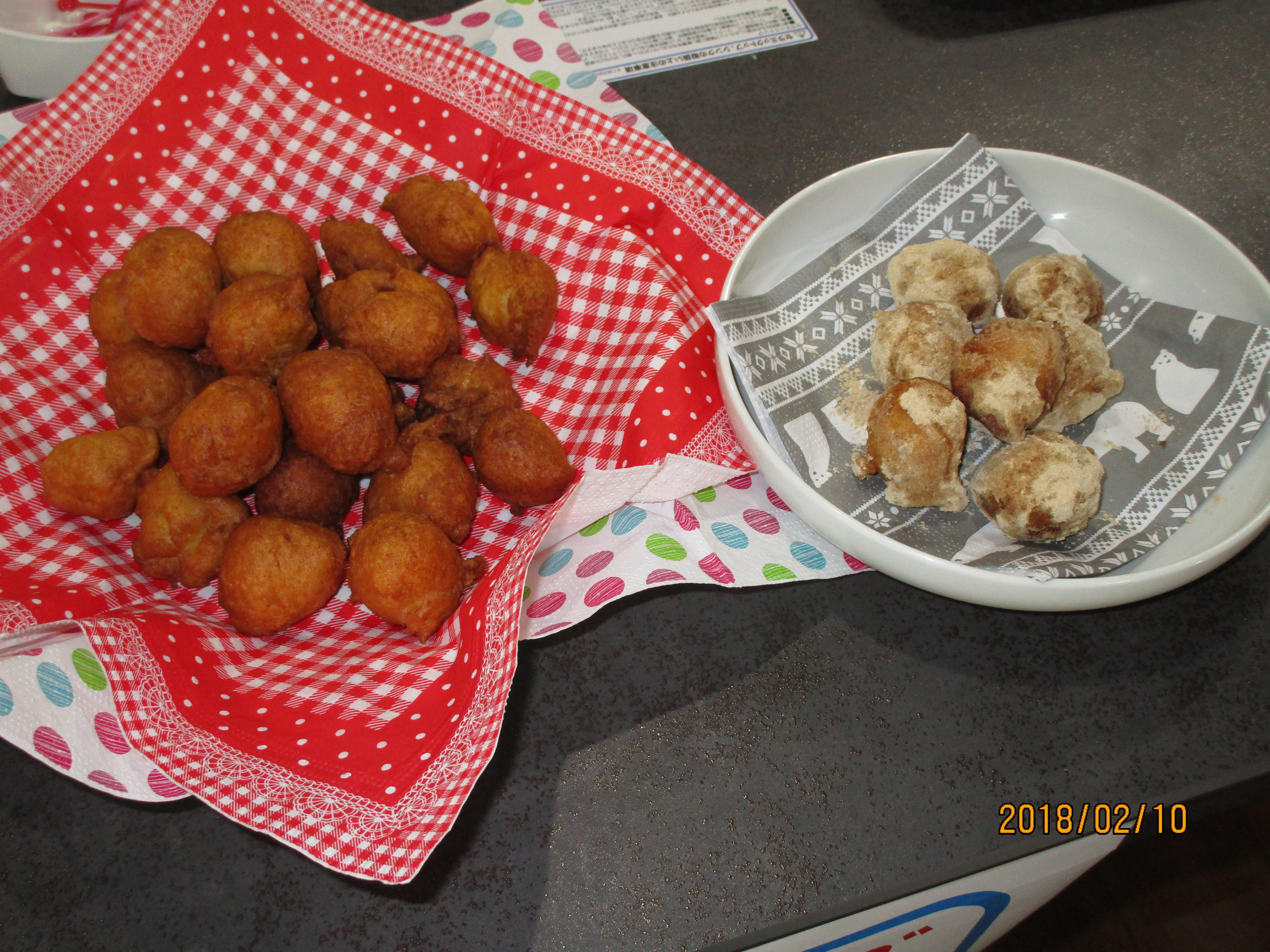 メニューは、①お雑煮 ②豆腐ドーナツ ③焼き芋。