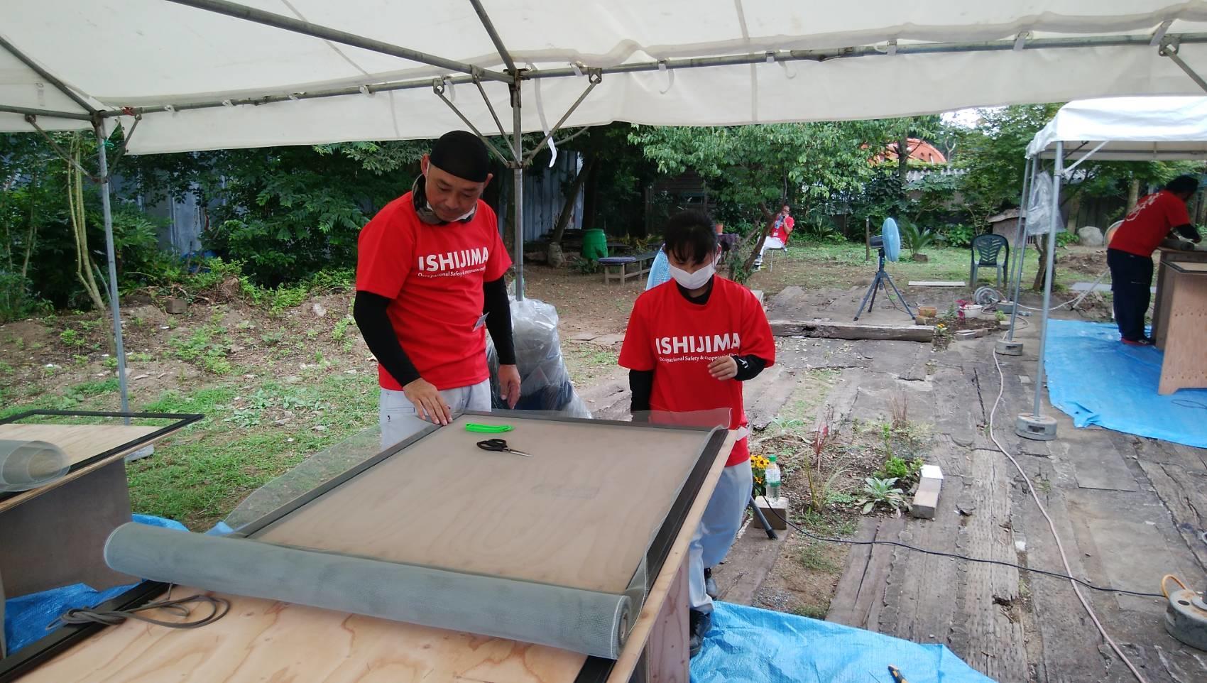 スタッフ総出での網戸張替にお客様からの応援の声。