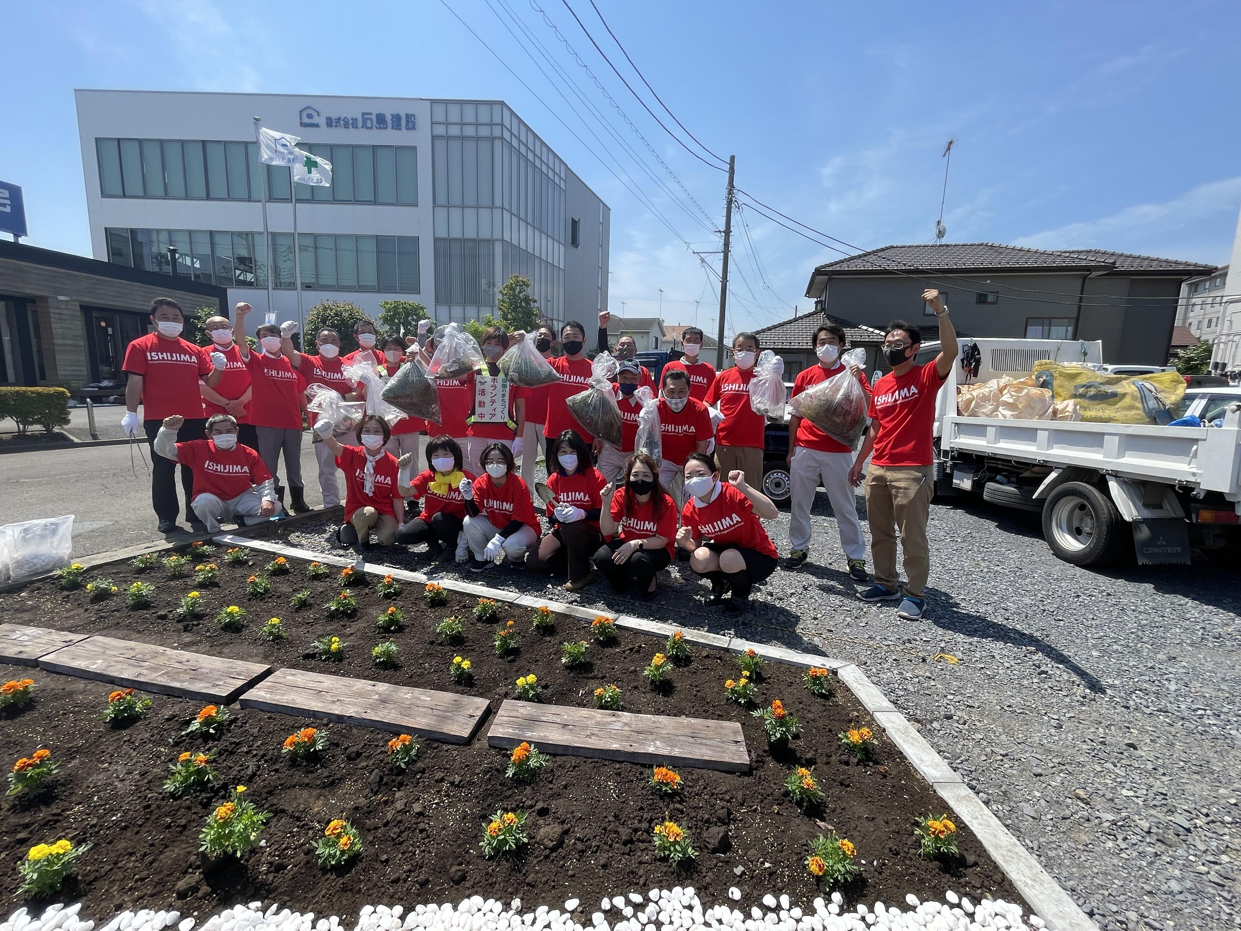 花壇づくりも同時進行で行い、旧50号線沿いの当社敷地内にカワイイ花壇を作りました!