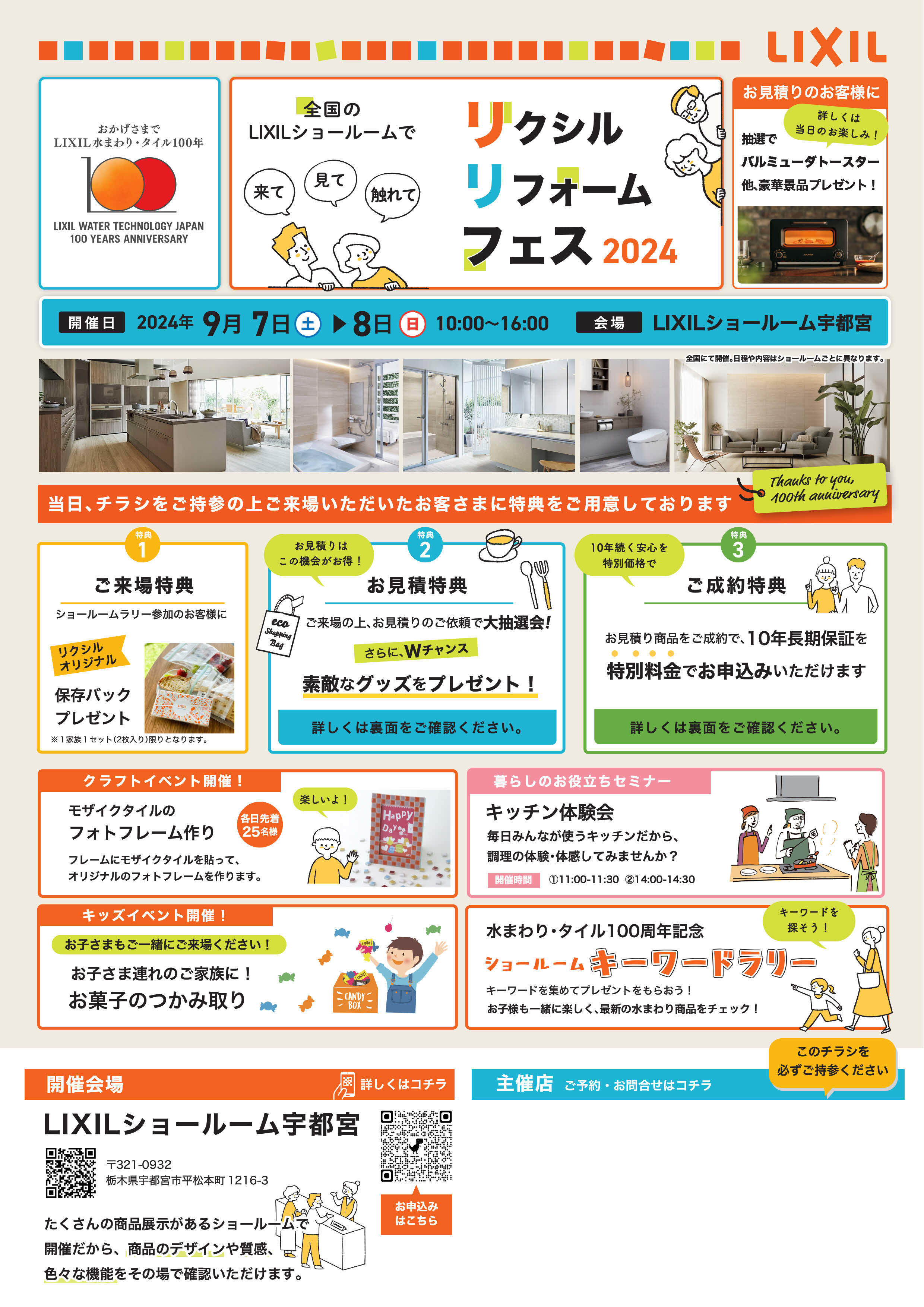 リクシル商品をショールームで見て、触って、体感できるイベントです。