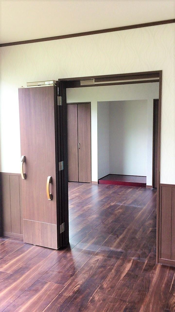 引き戸と開き戸が融合されたドアを設置致しました。既設の柱を動かさない限り出入り口有効幅の確保が困難でありましたが、このひきドアを設置することで車椅子でも楽々出入りが可能になりました。こちらの製品はお客様が外出先で見つけた製品で私も初めての工事となりました。インターネットでメーカーを検索し大工さんに取付けをお願い致しました。メーカーさんによると一般の住宅ではほとんど使われていないと言っていましたがとても便利な製品でした。お客様も私も大喜びで、今回のリフォーム工事のなかで一番こだわった部分であったと思います。