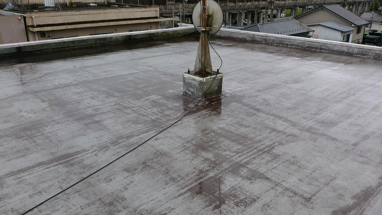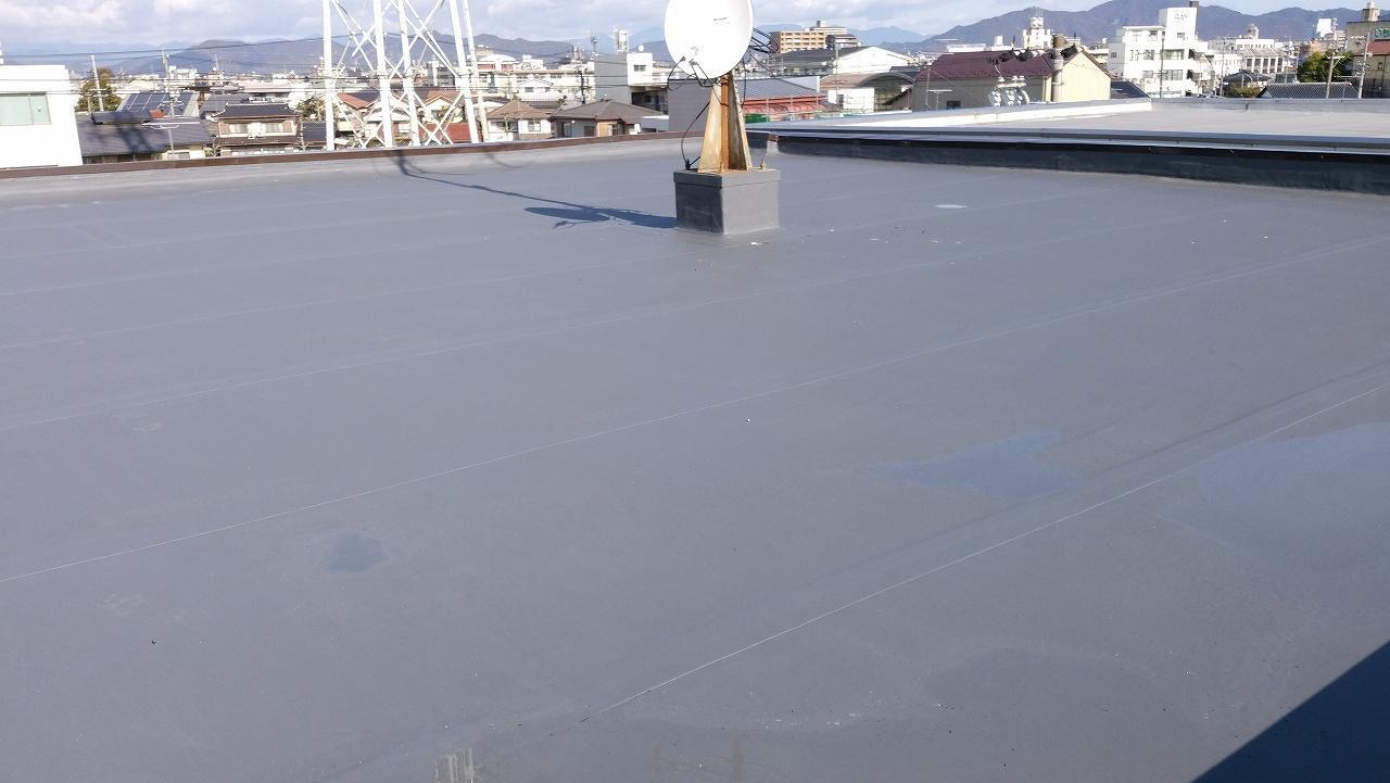 築38年の歴史ある店舗併用住宅の屋上防水工事を施工させて頂きました。 古くなったシートを剥がし、新たに塩ビシートを施工しました。仕上げはトップコートを行い美観向上と雨漏りの症状を改善しました。外壁の経年劣化も気になりますが、先ずは前の段階である屋上からの漏水を防ぐ事で、 お施主様の快適な生活を守ります。平面のみの施工ではなく、笠木部分に関しても塩ビシートで包み込みました。サビやハシゴの劣化していた部分は 塗装にてメンテナンスを行いました。