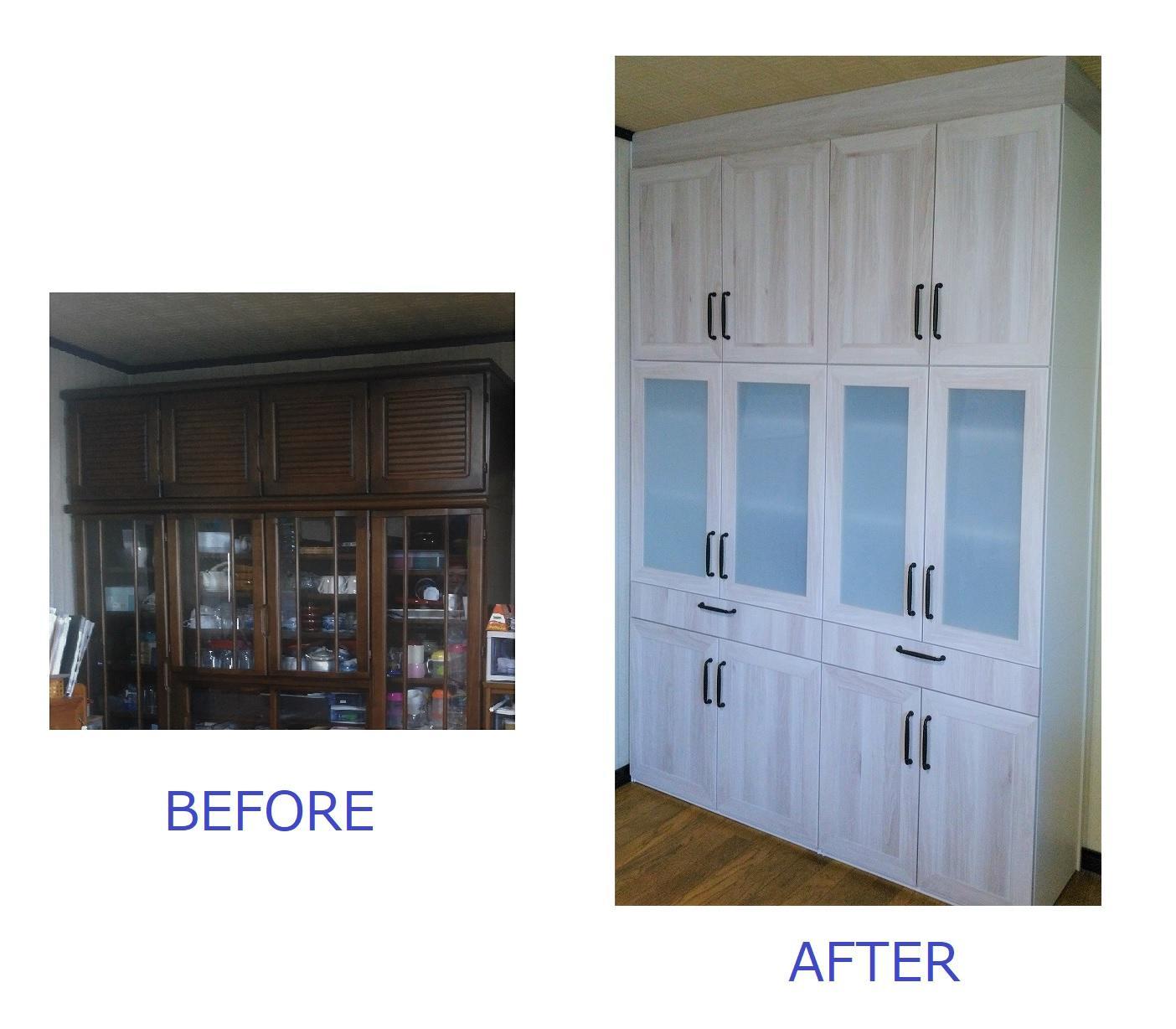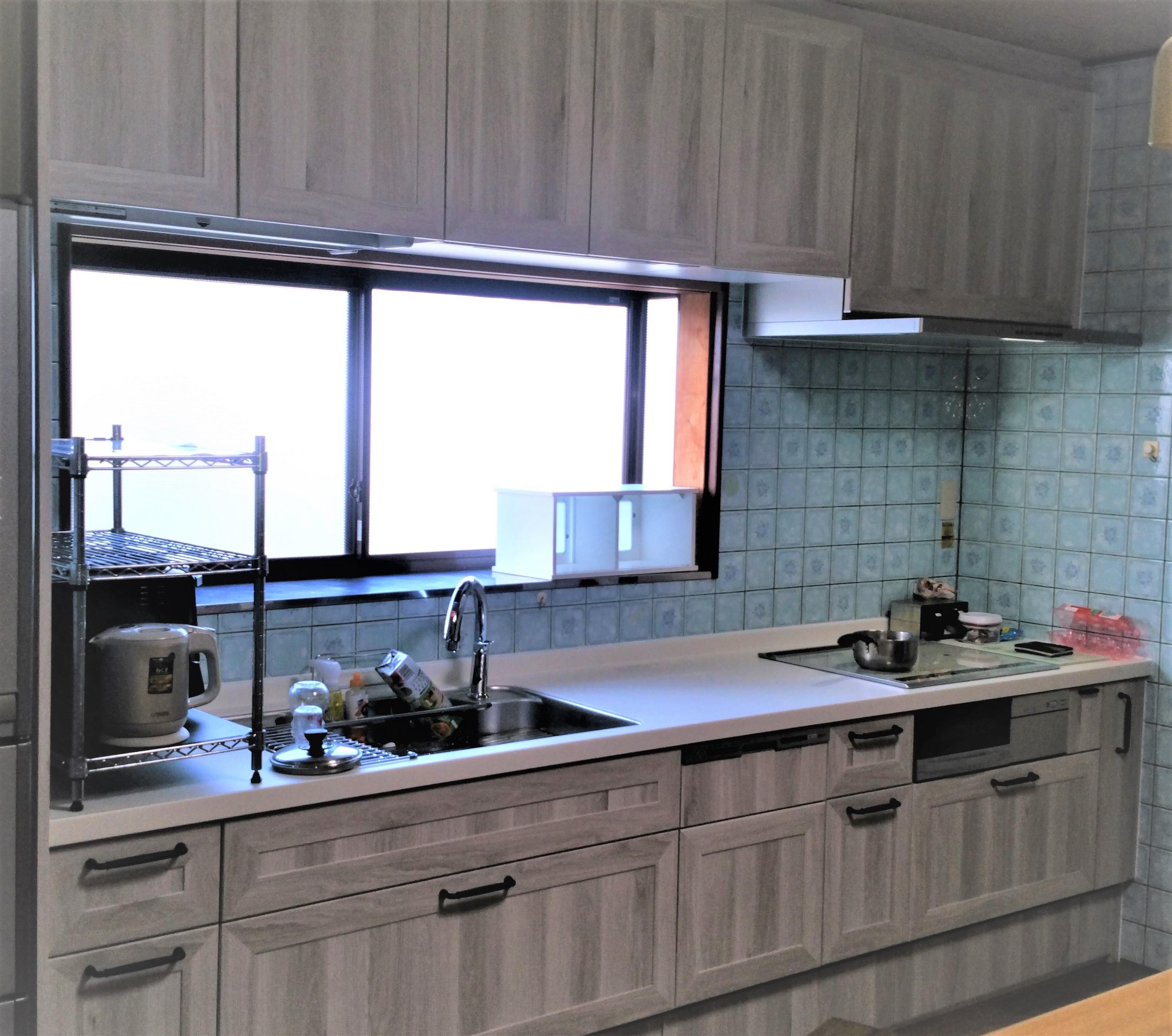 キッチンを新しいものにお取り替えされたいと、リフォームショップへご来店頂けました。お取り替え前のキッチンは、隅々までお手入れが施されており、とても美しい状態の為、タイルは思い出と共に残して新しいキッチン:リシェルSIの取り付け工事をさせて頂きました。特に扉柄を気に入って頂き、カップボードも同じ扉柄で設置させて頂きました。卓上食器洗い乾燥機からキッチン内蔵の食器洗い乾燥機に替わり、ワークトップもスッキリ!!統一された空間が素敵で、お客様にとてもご満足頂けました。