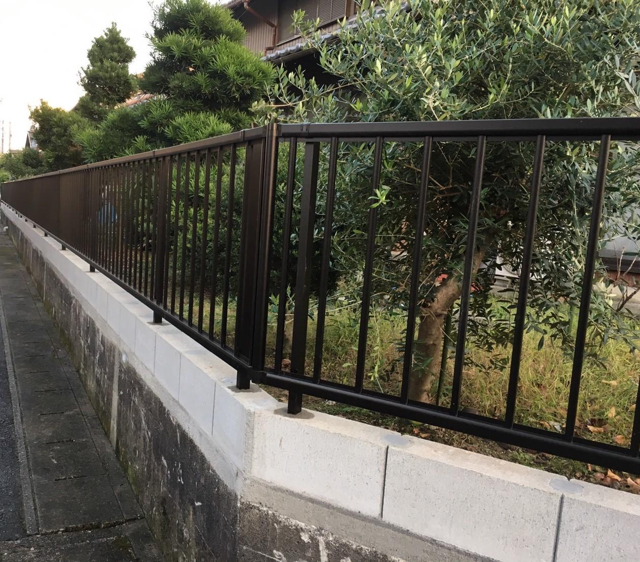 地震によりブロック塀が倒壊することを懸念されたお客様よりご相談を頂きました。50mあるブロック塀を撤去して、フェンスにして欲しいというご依頼でした。50mもあるという事で道路占用許可を取るのに時間がかかり、工事開始が1ヶ月近く遅れてしまいましたが、工事開始からはスムーズに進み予定の工事期間よりも早く終えることができました。オープンなフェンスを設置する事で視界が確保され、防犯性が高まります。