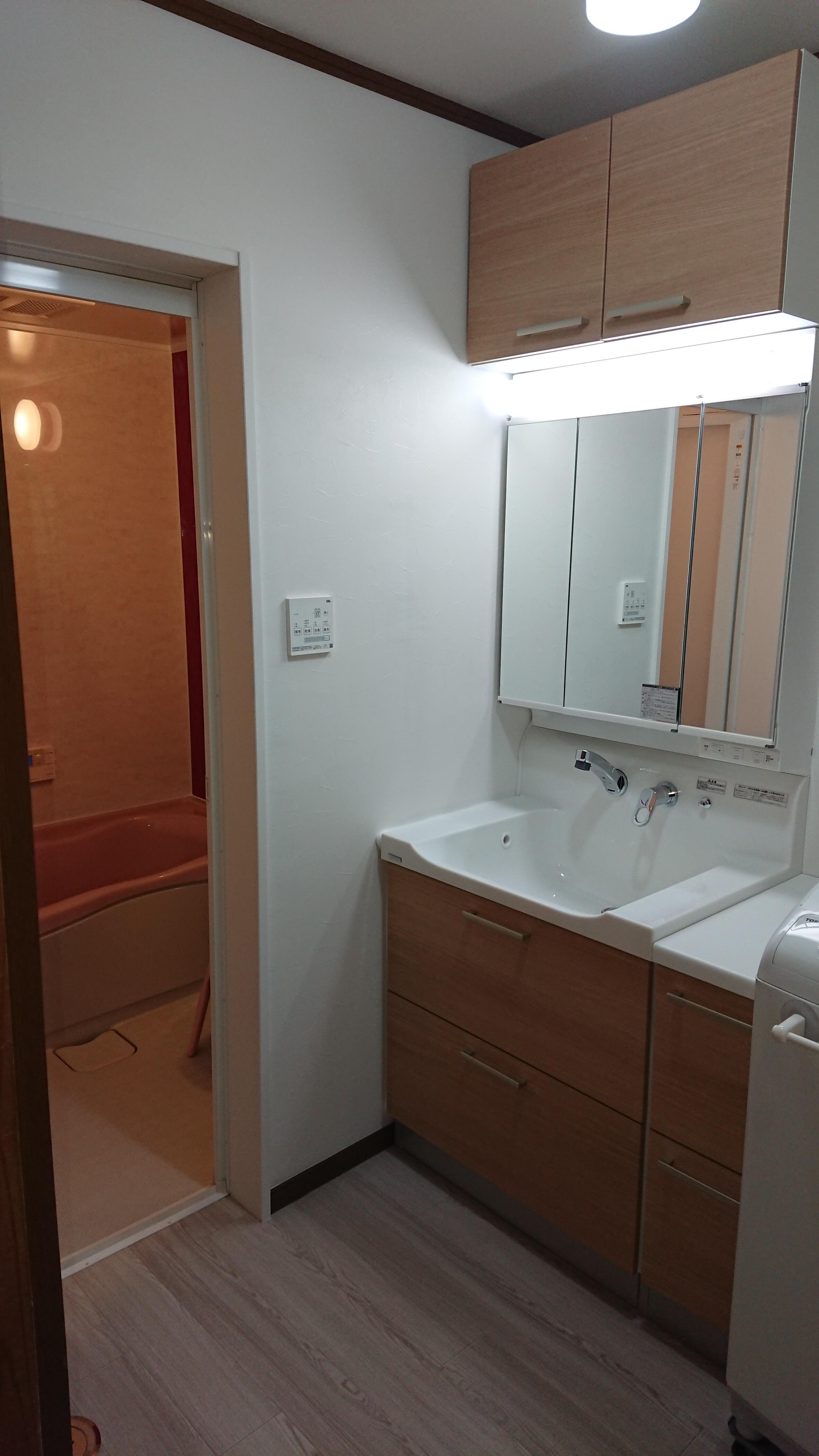 最新の断熱ユニットバスに換気暖房乾燥機をプラスしたことで、冬場の入浴がとても暖かく、しかもお湯の温度が下がらないのには驚きました。 お風呂の天井スピーカーから音楽が流れるので、さらに癒し効果バツグンです。 洗面所も、スッキリ快適空間になりました。
