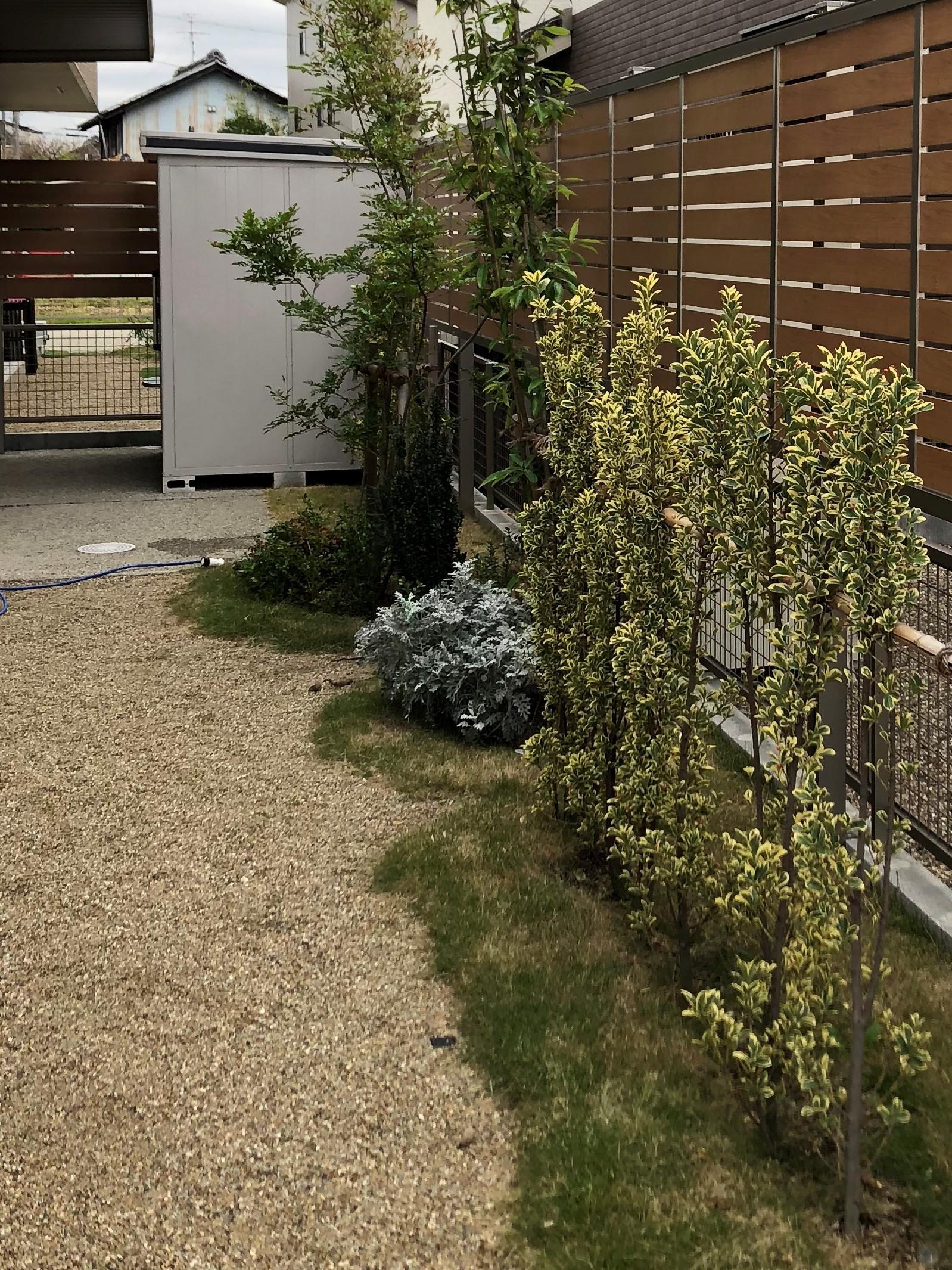 お客様のご要望をしっかりと把握し、お好みに合ったご提案をさせて頂けるようにプランさせて頂きました。 特に、カーポート側面のデザイナーパーツは、木目調のセレビューフェンスとの統一感が出せるように、同じ木目調をセレクトしました。 全体的なバランスを重視しながら、一つ一つのこだわりも感じて頂けたら幸いです。